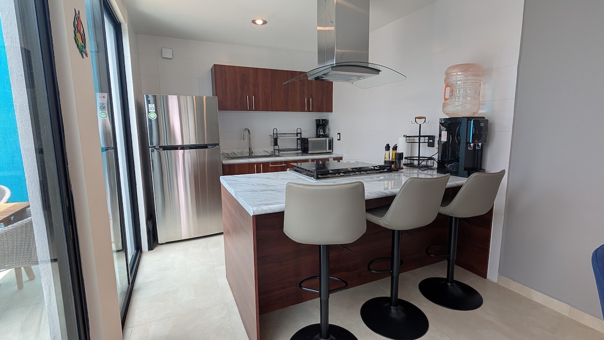 Ausgezeichneter privater Aufenthalt mit einem Schlafzimmer, Küche, Esszimmer und Wohnzimmer. Parken auf dem Bürgersteig vor der Wohnung. Sie befindet sich im Zentrum von Guadalupe, Zacatecas, 20 Autominuten vom Zentrum der Stadt Zacatecas entfernt. Nur 10 Minuten von den Einrichtungen der Messe und der monumentalen Lienza Charro entfernt. Kostenloses WLAN, Solarheizung. Ruhiger Ort zum Ausruhen.