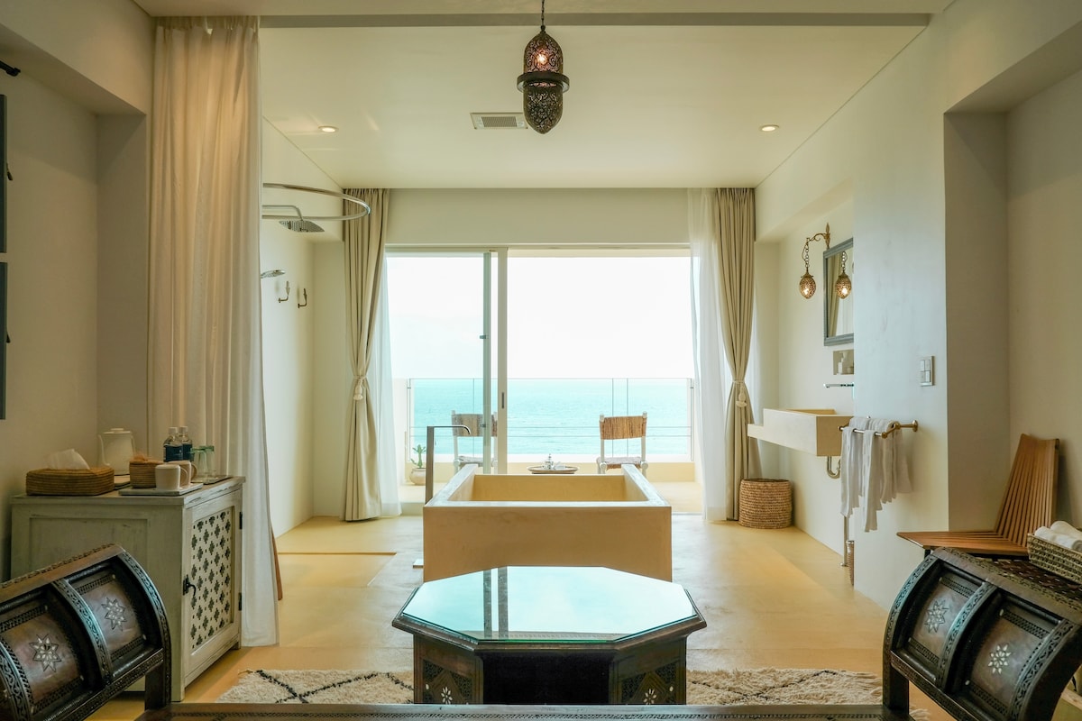 Umgeben vom Meer und Wald, ist Riad Lamp (marokkanisches RIAD) ein Luxushotel für Erwachsene, umgeben von Ruhe. Von hier aus kannst du die Morgensonne beobachten, den Sternenhimmel bei Neumond und den mondbeschienenen Weg, der bei Vollmond zum Meer führt, genießen. In der Stille ohne Außenbeleuchtung kannst du dich der Natur nahe fühlen. Du kannst eine Massage mit marokkanischem Arganöl erhalten oder an deinem Lieblingsplatz entspannen. Es gibt fünf Gästezimmer im Hotel. Der Pool und das Hauptgeschoss sind gemeinsam genutzte Räume.