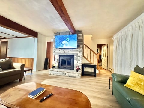 Genieße die Schönheit der Adirondacks und den Komfort eines sorgfältig eingerichteten Hauses, das Entspannung fördert. Der erste Stock hat ein offenes Konzept und umfasst eine geräumige Küche, einen Essbereich und einen einladenden Wohnbereich mit einer hohen Kathedralendecke und einem Kamin. Mach es dir gemütlich und lies am Feuer, schau fern oder spiele Brettspiele. Genieße bei Sonnenuntergang ein entspannendes Bad in einer übergroßen Whirlpool-Badewanne und ziehe dich dann in eines der vier Schlafzimmer im Obergeschoss zurück.
