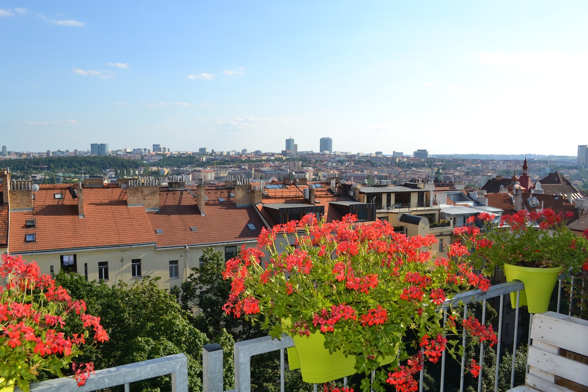 Moderne Wohnung im Zentrum von Prag. Panoramablick
