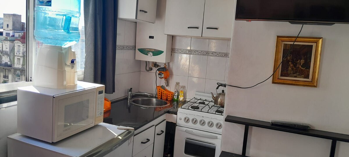 Este perfecto departamento en el corazón de Buenos Aires, se encuentra a metros de las atracciones mas importantes de Buenos Aires, como La Casa Rosada, el Congreso y el Palacio Barolo. Es la elección perfecta, para tu siguiente viaje, el departamento esta ambientado, para estadías cortas y largas. Y cuenta con una habitación con una cama Queen, que puede convertirse en dos camas singles, un living y una cocina-comedor, completamente equipada.