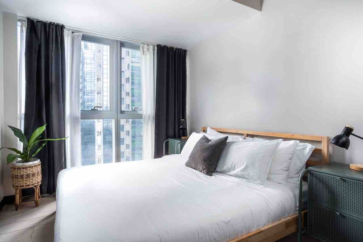 Willkommen in deinem stilvollen urbanen Rückzugsort! Erlebe Komfort und Bequemlichkeit in dieser neu renovierten, 65 qm 1-BR-Einheit. Sie verfügt über ein gemütliches Queensize-Bett, ein zusätzliches Doppelbett, einen eigenen Balkon und einen eigenen kostenlosen Parkplatz. Eingebettet im Herzen von BGC bist du nur wenige Schritte von erstklassigen Restaurants, lebhaften Cafés und Einkaufszentren entfernt. Ob du geschäftlich oder privat hier bist, dieser schicke Rückzugsort in der Stadt ist das perfekte zweite Zuhause.