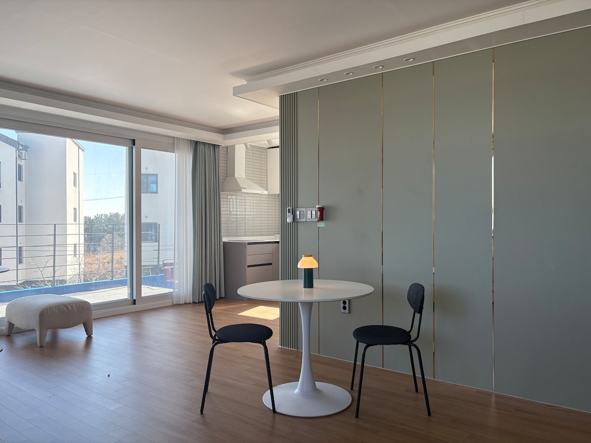 Entspanne dich bei diesem ruhigen und stilvollen Kurzurlaub. Moderne und einzigartige Unterkunft, hohe Decke, Blick auf das offene Fenster Gemütlich und angenehm Dies ist die Familia, wo auch die Meeresbrise ruht. 2 Queensize-Betten, Sofa für 1 Person, Zimmer 2. Es ist eine unabhängige Küche, ein Wohnzimmer usw. Es gibt genug Platz, um sie zu nutzen. Ein Heilungsort, an dem man sich ruhig entspannen möchte Es wird auch als Arbeitsplatz für die Arbeit empfohlen. Dies ist eine Unterkunft, in der du mehr als eine Woche leben kannst.
