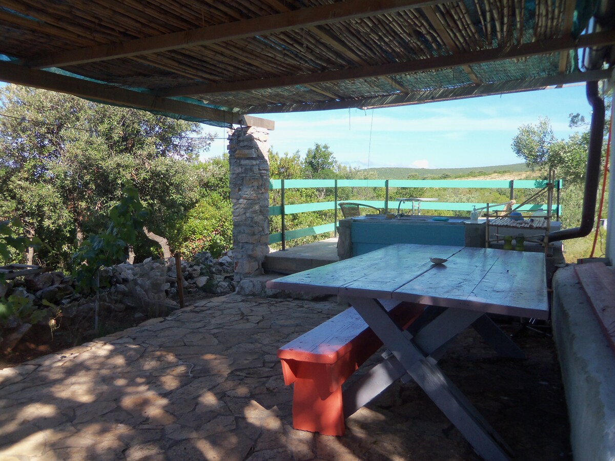 Verbringen Sie Ihren Urlaub im Robinson-Haus Mare und erleben Sie unwirkliche Momente, umgeben von unberührter Natur und kristallklarem Meer. Das Haus liegt abgelegen in der Bucht Doca auf der Insel Murter, in völliger Isolation. Das Haus kann nicht mit dem Auto erreicht werden, sondern nur zu Fuß (10 Minuten zu Fuß vom Parkplatz im Camp Kosirina). Urlaub bedeutet Einsamkeit, der Duft der Natur, eine wunderschöne Aussicht, keine Menschenmassen, kein Lärm und kein Verkehr. Wachen Sie morgens mit dem Rauschen des Meeres und dem Zwitschern der Vögel auf.