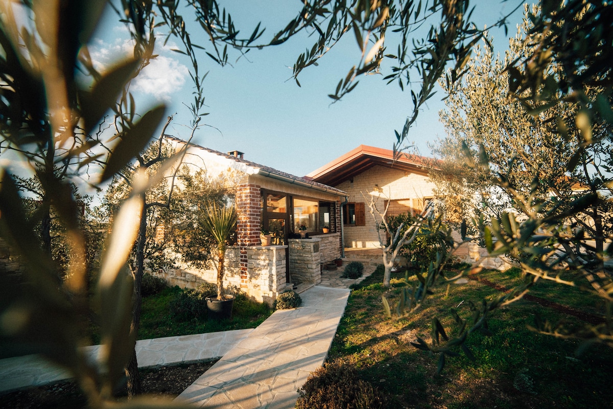 Villa "Baum des Lebens" bietet Ihnen Ruhe und Frieden in unberührter Dorfnatur. Die Villa befindet sich in einem Olivenhain, umgeben von über 40 Olivenbäumen auf über 1700 Quadratmetern. Die gesamte Unterkunft ist von einer Steinmauer umgeben. Es ist nur eine 10-minütige Autofahrt von allem entfernt, was die Stadt Zadar zu bieten hat. (Einkaufen, Sehenswürdigkeiten, Restaurants, Nachtleben) Villa „Tree of life“ ist ein neues Haus (2023), das im traditionellen mediterranen Stil (Stein und Holz) in Kombination mit modernen Elementen gebaut wurde.