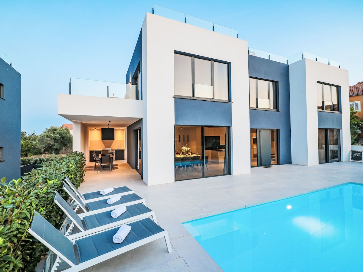 Entdecken Sie alle Möglichkeiten dieser attraktiven und modernen Villa mit sorgfältig ausgewählten Details, die sich über mehr als 400 Quadratmeter erstreckt und für unvergessliche Ferien und ein umfassendes Erlebnis des Mittelmeers gedacht ist. Die offene und weitläufige Raumgestaltung, das moderne Design und die geschmackvolle Dekoration ergeben zusammen eine elegante und anspruchsvolle Harmonie, die diese Villa zu einem idealen Ort für Familienurlaube und die Bewirtung von Freunden macht. Der Innenraum ist offen, modern und hell. Elegante Möbel schaffen eine angenehme Atmosphäre für einen luxuriösen Urlaub. Große, bodentiefe Fenster im Wohnzimmer sorgen tagsüber für viel Tageslicht und verbinden Wohnzimmer, Küche und Esszimmer direkt mit der schönen Terrasse. Der Außenbereich mit Pool ist genauso schön wie der Innenbereich. Liegestühle laden zum Sonnenbaden an langen Sommertagen ein. Hier können Sie entspannen, im privaten Pool schwimmen oder einfach Ihr Lieblingsbuch lesen, während die Kinder im komplett umzäunten Garten spielen. Die geräumige Terrasse mit Esstisch und Grillplatz ist ideal für gesellige Abende mit gutem Essen und einer erfrischenden Meeresbrise, die den intensiven Duft von Pinien und üppiger mediterraner Vegetation mit sich bringt. Wer absolute Privatsphäre wünscht, kann sich in den Wellnessbereich zurückziehen und im Whirlpool oder der finnischen Sauna entspannen. Für alle, die einen aktiveren Urlaub bevorzugen, gibt es einen Fitnessraum und ein Spielzimmer, wo man Fußball oder Darts spielen kann, während die Kleinsten ihre Gaming-Fähigkeiten an der PS4 unter Beweis stellen. Nach einem erlebnisreichen Tag können Sie sich in einem der fünf komfortablen und klimatisierten Zimmer mit Bad, Terrasse und Fernseher erholen oder einen wunderschönen Sonnenuntergang auf der Terrasse genießen. Die Villa Biograd ist ein vollklimatisiertes Ferienhaus mit WLAN und eigenem Parkplatz. Dieses luxuriöse Anwesen mit fünf komfortablen Schlafzimmern mit Bad bietet Platz für bis zu zehn Gäste. Maximal 10 Erwachsene + 2 Kinder