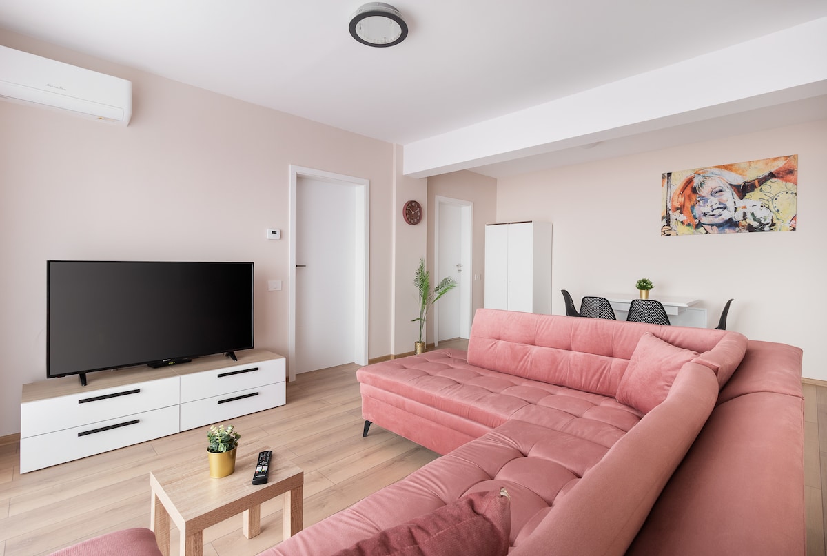 Welcome to Blissful Haven Two! Step into this charming 2-bedroom, 2-bathroom apartment, located just a stone's throw away from Oradea's lively city center. Enjoy breath-taking sunset views and hassle-free entry with our convenient code-based access system. Our dedicated team ensures a spotless space with professionally cleaned sheets, promising you a cozy and seamless retreat! Your comfort is our priority, which is why we provide a free dedicated parking spot for your convenience.