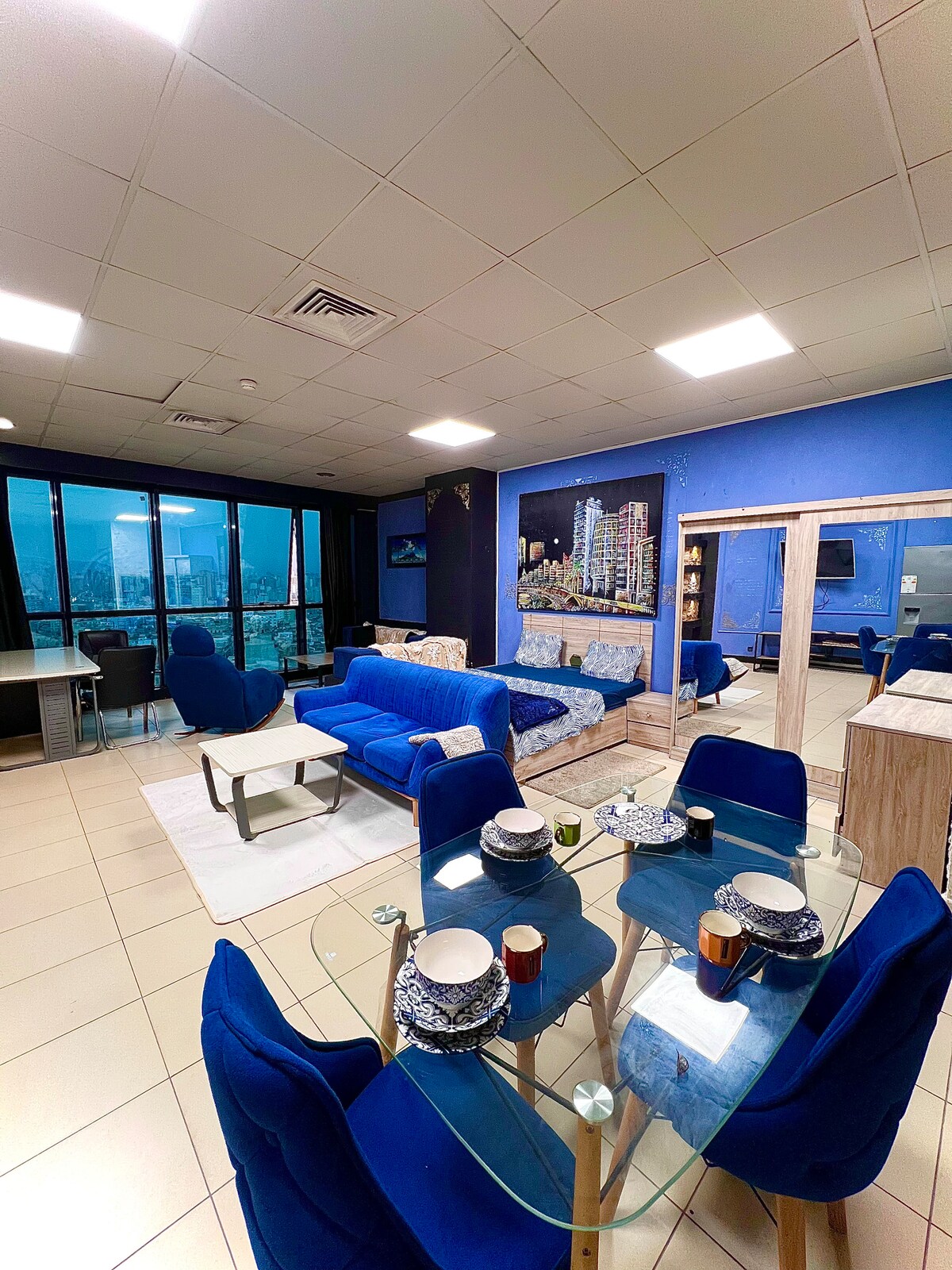 Eine hochwertige Wohnung befindet sich in der Oran Residenz Boulevard les Cliffs in der Nähe des Sheraton Hotels und Four Point Im Herzen von Oran. Eine geräumige Unterkunft oben mit atemberaubender Aussicht auf die gesamte Stadt Oran, die es dir ermöglicht, einen angenehmen Aufenthalt mit deinen Lieben oder deiner Familie zu verbringen - Sichere Residenz, die von Sicherheitsmitarbeitern und Überwachungskameras überwacht wird Fitnessraum unten auf der Residenz verfügbar Aussenparkplatz mit Wache