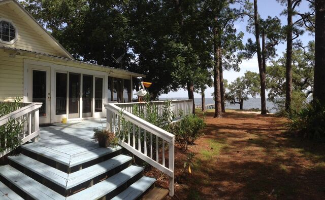 Our Bay-front Cottage was built in the mid 1930s as part of a small fishing village. It is well appointed, quiet,rustic and relaxing, a welcomed days end retreat from the hustle and bustle of vacationing in the Gulf Shores area. Great place for couples. We now have an outdoor solar shower. Great in summer, helps to make up for the small shower. People were smaller back then. Coming soon... the bike trail connecting to Gulf Shores and the National Park will be done soon. Rated #1 bike trails.
