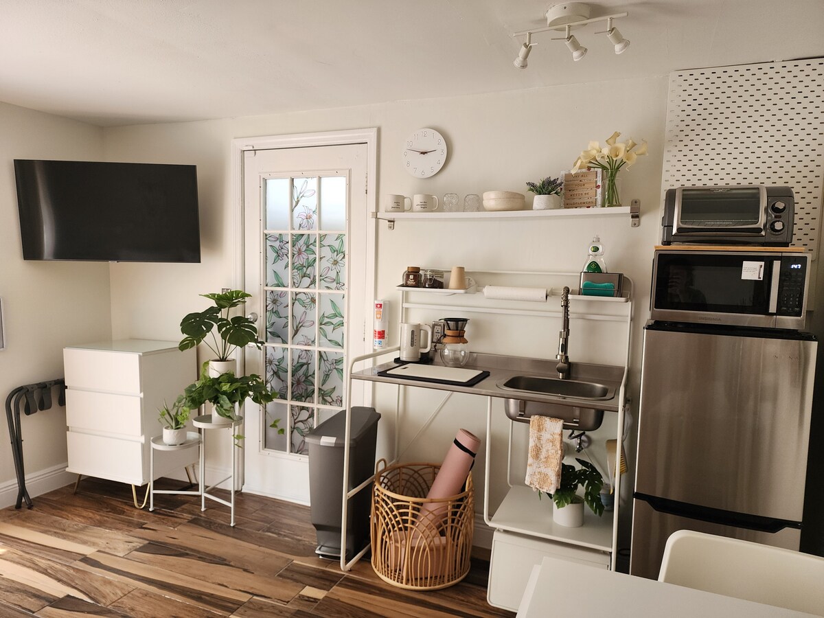 Cozy private studio just 5 minutes from Orlando International Airport (MCO) and close to Disney, Universal, and major attractions. This studio is attached to a single-family home but is completely private, with its own entrance and free parking. Enjoy an open layout with a comfortable queen bed, kitchenette for warm meals, fast Wi-Fi, and a quiet space perfect for business trips, layovers, or a relaxing Orlando getaway.
