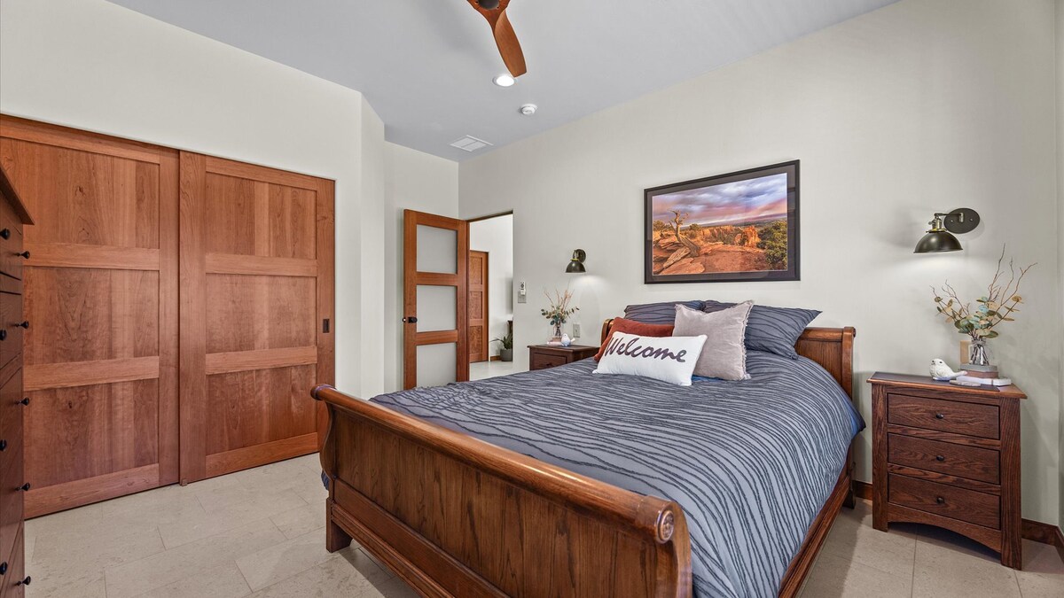 Mountainbiken, Wandern, Motorradfahren? Hier ist alles in Ordnung! Unser neu gebautes 2-Zimmer-Privathaus befindet sich am Fuße des Colorado National Monuments und ist durchdacht gestaltet, um dir zu helfen, dich zu entspannen und zu erholen. Fahre aus der Hintertür oder mache eine kurze Fahrt zu den legendären Trails von Grand Junction und Fruita. Wenn der Spaß vorbei ist, ruhe deine Beine auf deiner abgeschiedenen Terrasse aus und beobachte den Sonnenuntergang über den Sandsteintürmen, die sich im Hinterhof abzeichnen.