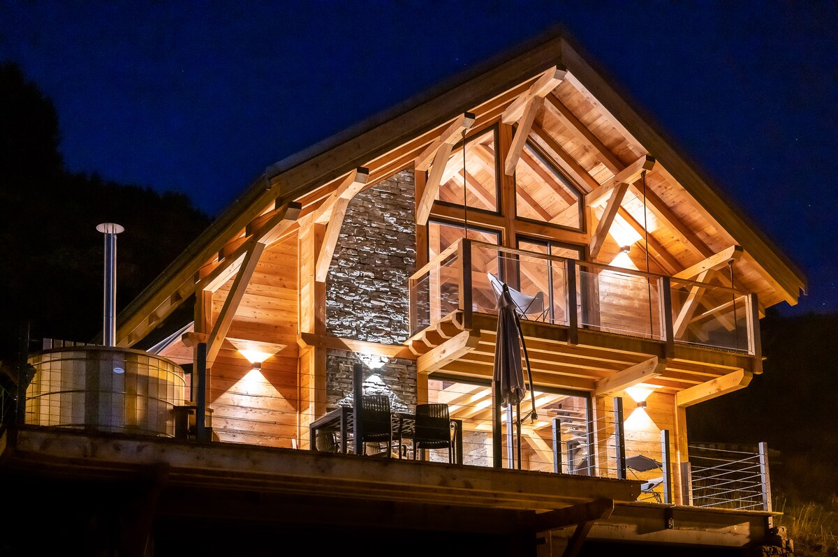 Chalet aus Holz und Stein mit Nordischem Bad