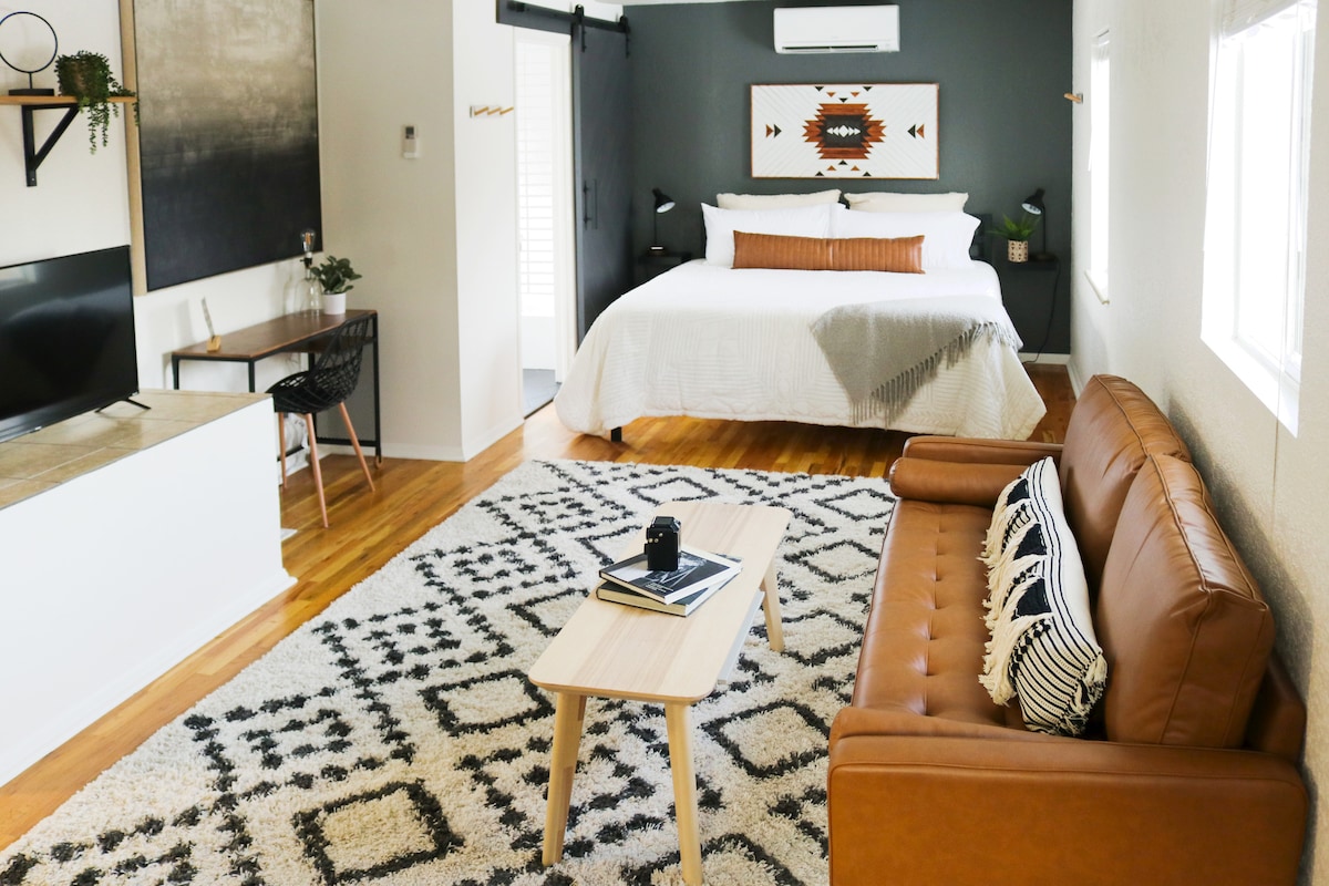 Diese geräumige 628 Quadratfuß große Einliegerwohnung ist wunderschön eingerichtet, um deinen Urlaub zu etwas ganz Besonderem zu machen. Ein Schlafzimmer, ein Badezimmer, ein Wohnzimmer, ein Esszimmer und ein großzügiger Küchenbereich. Das Hotel liegt im wunderschönen Viertel Berkeley Park. Nur wenige Gehminuten von zwei Seen entfernt. 7 Blocks von den Cafés und Restaurants der Tennyson St. entfernt. 10 Fahrminuten zur Innenstadt und zum Bahnhof Union Station. 25 Fahrminuten vom Flughafen entfernt. Mehr Vorräte als die meisten. Diese Unterkunft wird dich dazu bringen, alle Möbel darin für dich kaufen zu wollen.