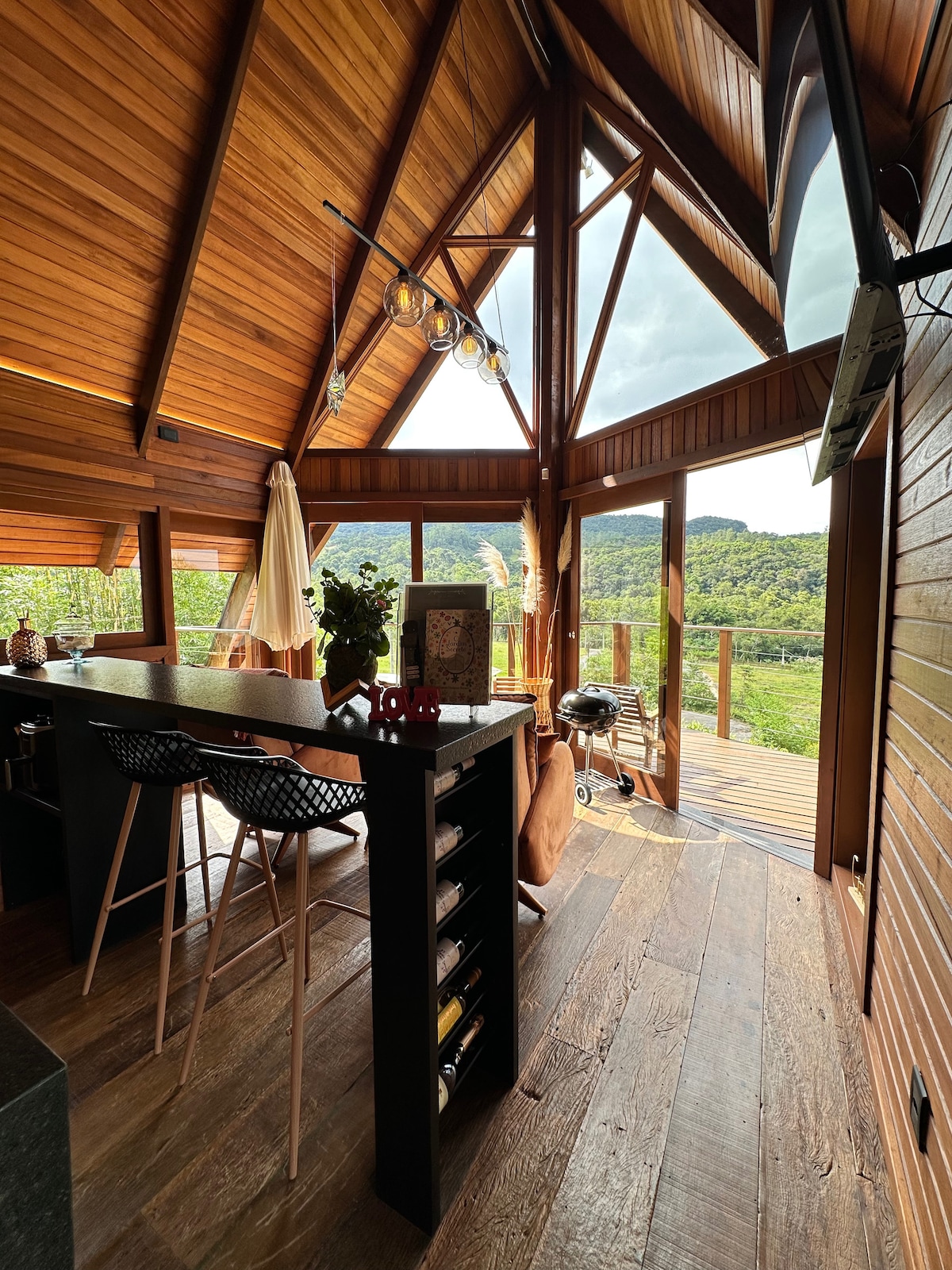 Luxus-Aframe-Hütte mit Badewanne und Aussicht