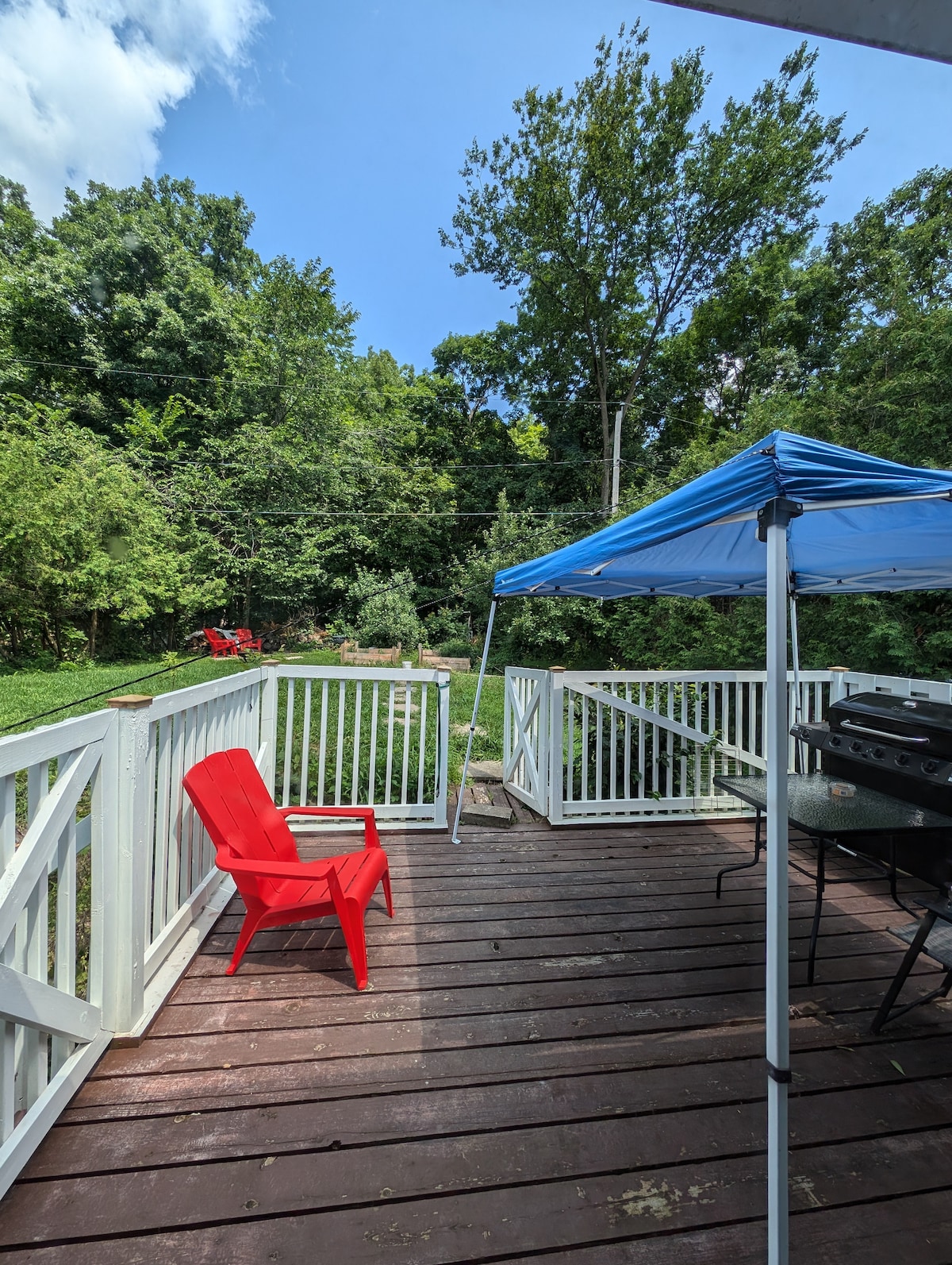 „Casa Feliz“ befindet sich in einem originalen Wakefield-Gebäude aus dem Jahr 1910 im Herzen des Dorfes und vor der Haustür von 1001 Outdoor-Abenteuern. Genieße eine üppige Mahlzeit in einem von Wakefields fabelhaften Restaurants oder koche zu Hause und genieße den gemütlichen Esstisch und den Holzofen. Sommerbesucher können nur wenige Schritte entfernt in den Fluss springen. Im Herbst kannst du die spektakuläre Show der leuchtenden Blätter genießen, die sich rot und gold färben. Der nahe gelegene Gatineau Park bietet einige der besten Langlaufloipen Kanadas (CITQ # 303917).