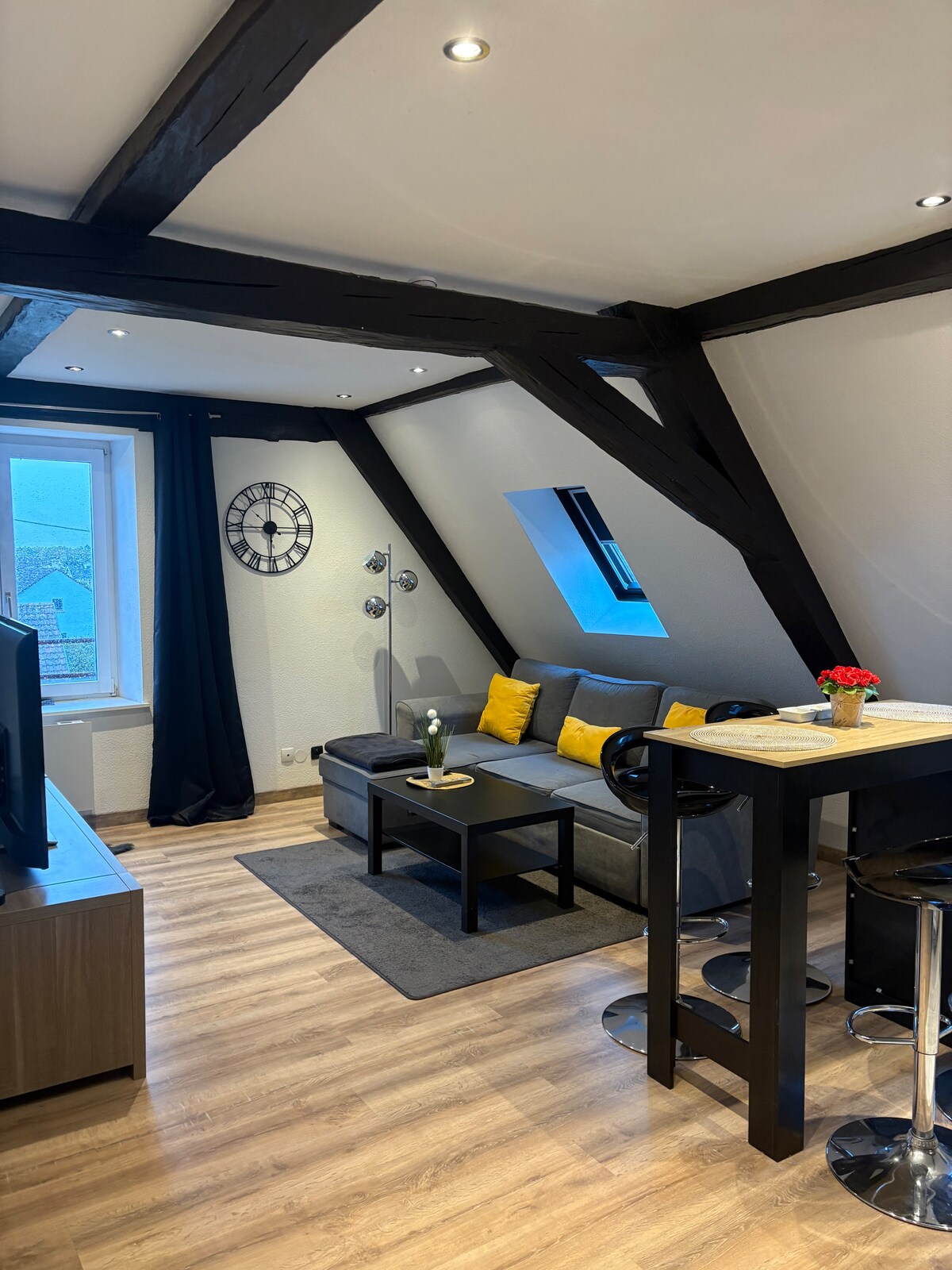 Entdecken Sie diese charmante Wohnung, geräumig und komplett renoviert, mit sichtbaren Balken und Blick auf den Weinberg. Nur einen Katzensprung vom Stadtzentrum und den Geschäften entfernt und ideal an der Elsässer Weinstraße gelegen, 20 Minuten von Colmar und Mulhouse und 30 Minuten vom Skigebiet Markstein entfernt. Zu Ihrer Verfügung: Kaffee und Tee, WLAN, Netflix,... Die Betten sind bei Ihrer Ankunft gemacht und Handtücher werden zur Verfügung gestellt.