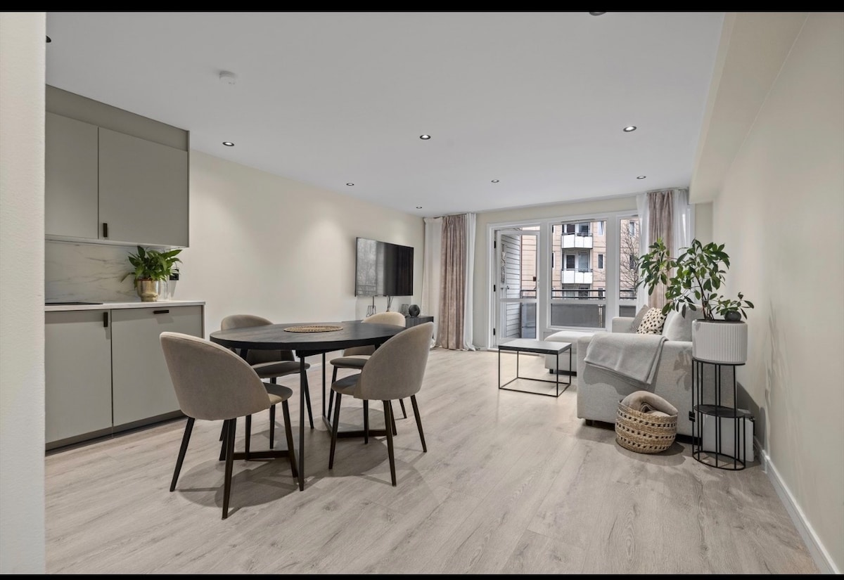 Helle, moderne 2-Zimmer-Wohnung im 2. Stock in Mandalls Gate 5A, nur 3 Gehminuten vom Osloer S- und Busbahnhof entfernt. Genieße den schlüssellosen Zugang, die Klimaanlage und das 250-Mbit/s-WLAN. Die voll ausgestattete Küche, der Geschirrspüler, die Waschmaschine, die Verdunkelungsrollos und die hochwertige Bettwäsche sorgen für Komfort bei kurzen und langen Aufenthalten (1–2 Gäste). Entspanne dich im privaten eingezäunten Garten mit Gartenmöbeln und Holzkohlegrill. Cafés, Parks, Opernhaus, Barcode und Fjordpromenade in der Nähe runden den urbanen Rückzugsort ab.