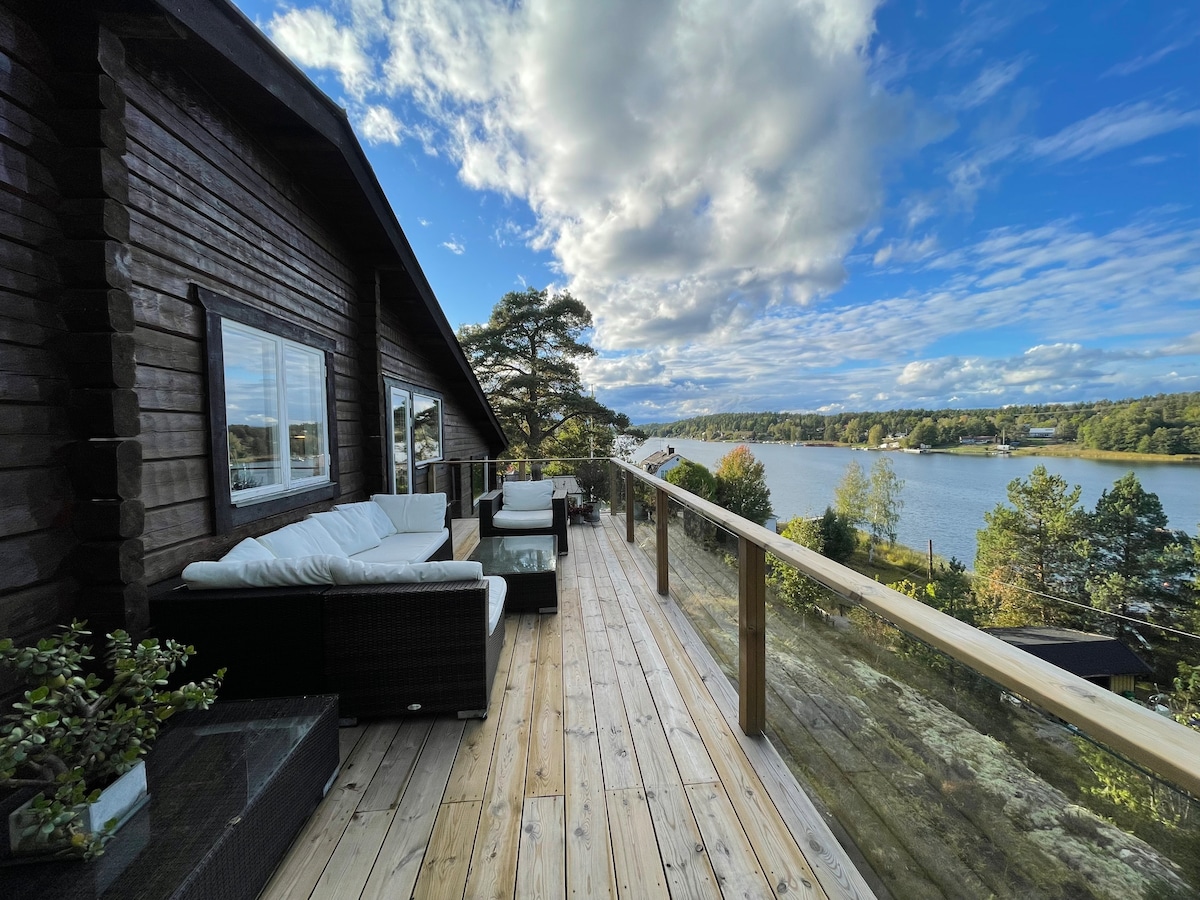 Dieses Haus befindet sich direkt am Wasser. 63 Quadratmeter. Sehr ruhig, perfekt für ein romantisches Wochenende. Zünde ein offenes Feuer an, nimm ein Bad im Whirlpool neben dem Haus, lausche den Wellen und trinke ein Glas Wein. Abendessen bei Sonnenuntergang. Tauche nach dem Whirlpool vom Steg aus in die Ostsee ein. Beobachte die vorbeifahrenden Fähren und Yachten. In der Nähe von Slalompist in Stockholm. 20 Minuten mit dem Auto nach Stockholm-Stadt oder nimm einen Bus oder eine Fähre. Oder mache eine Tour im Archipel. 1 Doppelkajak und 2 Einzelkajaks sind inbegriffen.