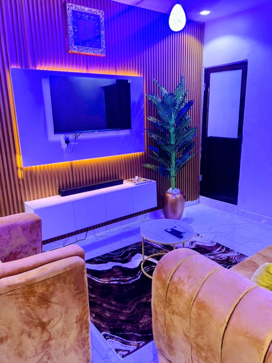 Bright & Modern 2-Bedroom Apartment in Shangisha, Magodo Phase 2, Lagos. Enjoy a stylish and cozy 2-bedroom apartment with a fully equipped kitchen, free Wi-Fi, smart TV with DSTV, and a workspace. Relax or socialize in the shared green turf seating area with four chairs and adjustable shade. Perfect for families, business travelers, or weekend getaways, with easy access to Ikeja, Lagos Island, and the airport. There are two units of this 2-bedroom apartment available in the same building.