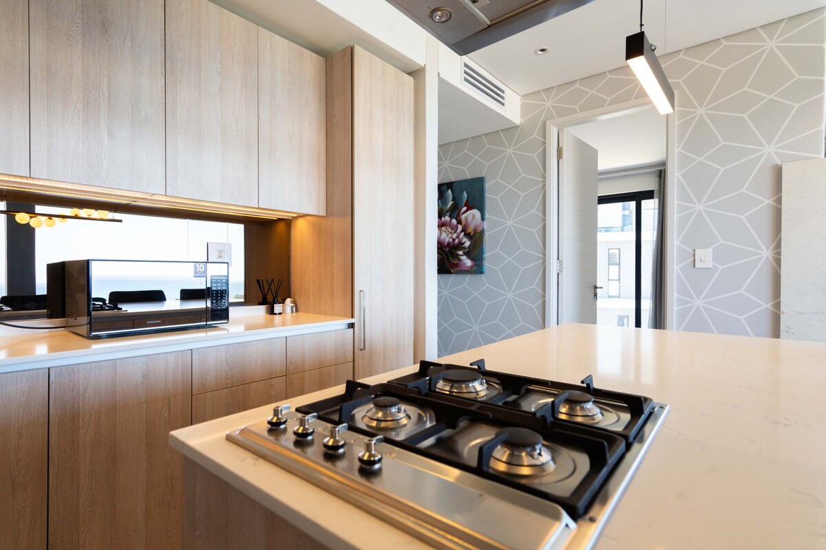 Exquisite 3-Zimmer-Wohnung mit 3 Schlafzimmern und jeweils eigenem Bad, mit voller Notstromversorgung, mit Blick auf den Indischen Ozean und den Hawaan-Wald, mit einem 270°-Blick von Durbans „Golden Mile“ bis Balito. Genuss für die ganze Familie; Pool im 4. Stock, Planschbecken, Sportbecken, Familien-Erholungsbereiche und Zugang zum Strand Umdloti über einen Wanderweg mit vielen Tieren. Weltklasse-Sicherheit mit 24/7 Bewachung vor Ort und Videoüberwachung. Jetzt mit einem Botique Checkers und Café auf dem Ocean Dune Estate.
