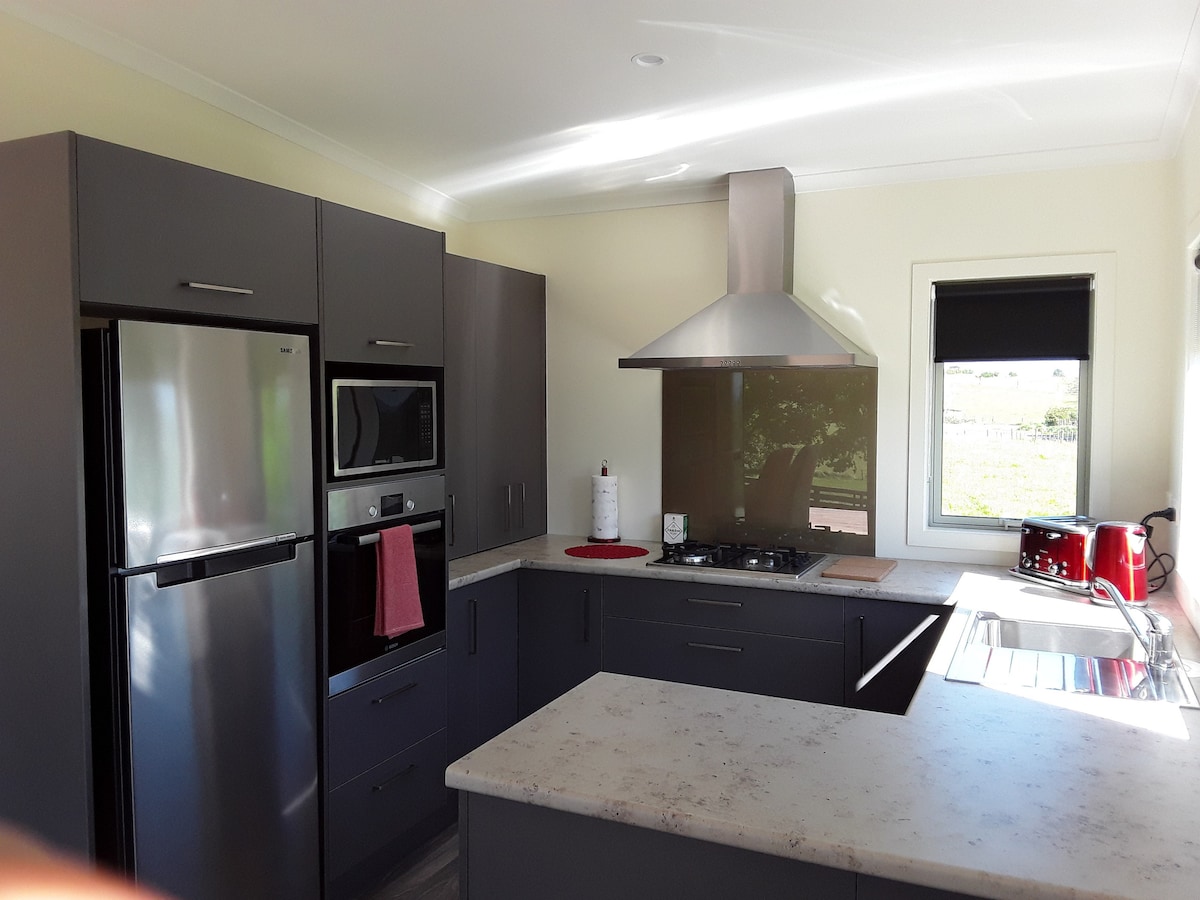 Breathe the fresh country air at this contemporary architecture retreat. On the outside, the home features a sleek industrial aesthetic and a private outdoor bath, while the inside bursts with a boutique design style, neutral greys, and wood accents. The country stay is located down a typical New Zealand country road. Surrounded by dairy farms and kiwi fruit orchards, guests may see farmers about their daily work. Feel free to wave out to them if they drive past in their tractors.