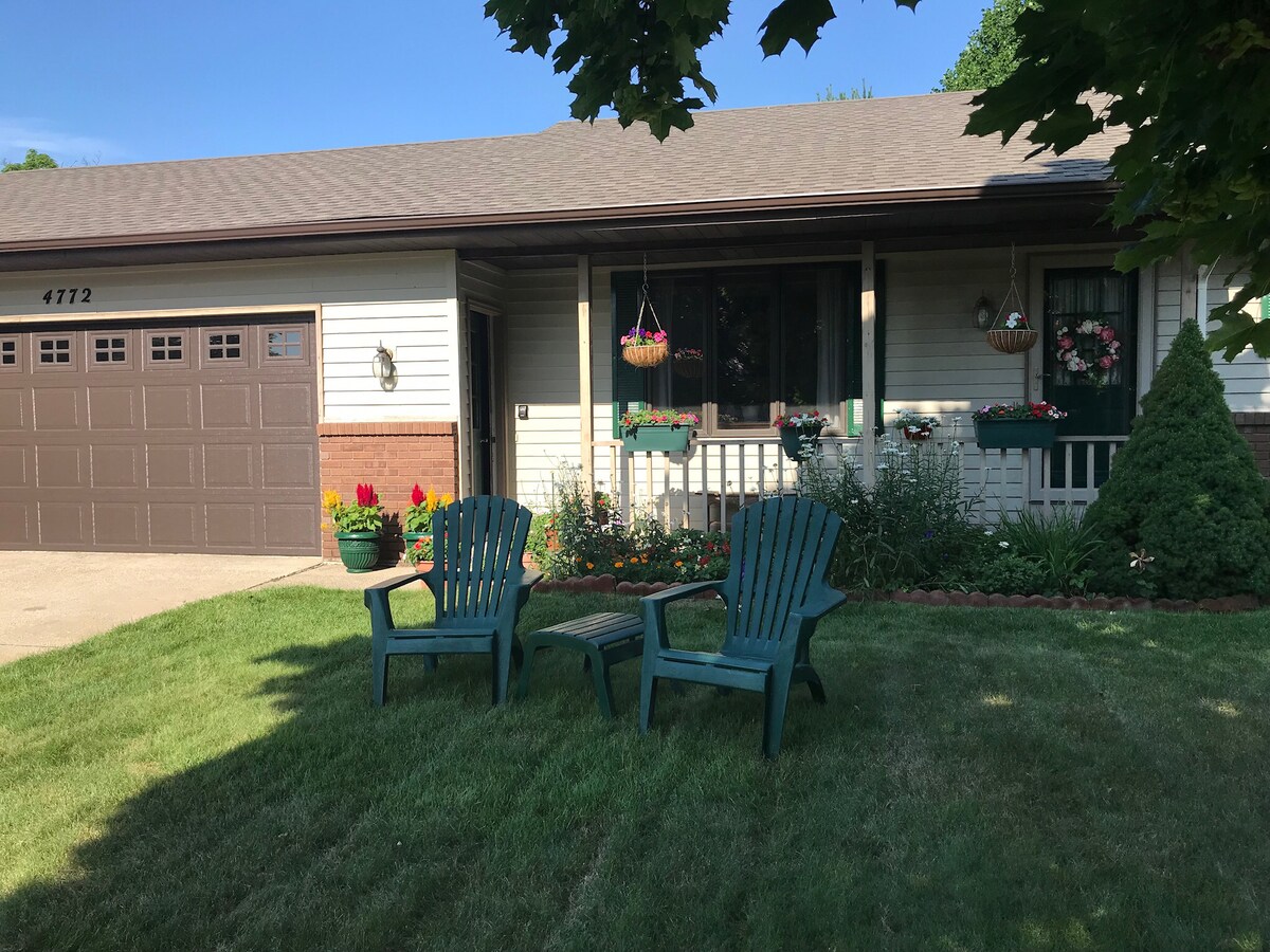 Exekutive, gemütliche Wohnung mit einem Schlafzimmer, einem Bad, untere Einheit. Voll ausgestattete Küche und komplettes Badezimmer mit Waschmaschine/Trockner-Kombination. Privater Eingang und private Terrasse. Komfortables Queensize-Bett im Schlafzimmer und ein Schlafsofa im Wohnzimmer. WLAN und Kabelkanäle verfügbar. Die Unterkunft liegt in einem sicheren, ruhigen, bewaldeten, ländlichen Viertel in der Nähe von Grand Haven und Holland, mit Zugang zu vielen Parks, Stränden und Golfplätzen. Die Wohnung ist perfekt für Geschäftsreisende, Paare oder kleine Familien, die die Gegend besuchen.
