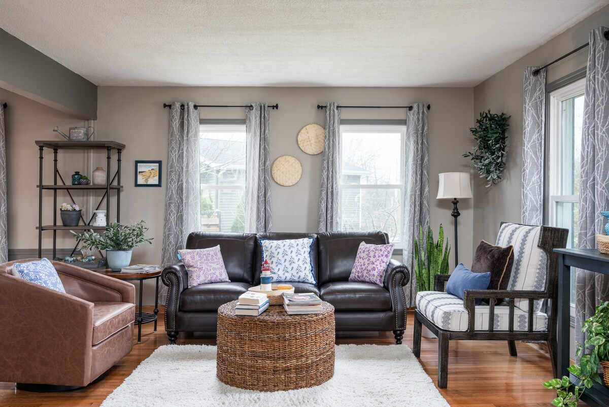 Willkommen in deinem Family & Friends Nest 1688 – einem geräumigen Haus mit 6 Schlafzimmern und 3 Badezimmern, nur 10 Minuten von der Innenstadt von Grand Rapids entfernt! Dieser moderne Rückzugsort ist perfekt für große Familien, Zusammenkünfte, Geschäftsreisende oder besuchende Eltern von Studenten und vereint Komfort, Platz und Wellness. Entspanne dich in der privaten finnischen Sauna, fordere Freunde im Spielzimmer heraus oder versammle dich im hellen, offenen Wohn- und Essbereich.