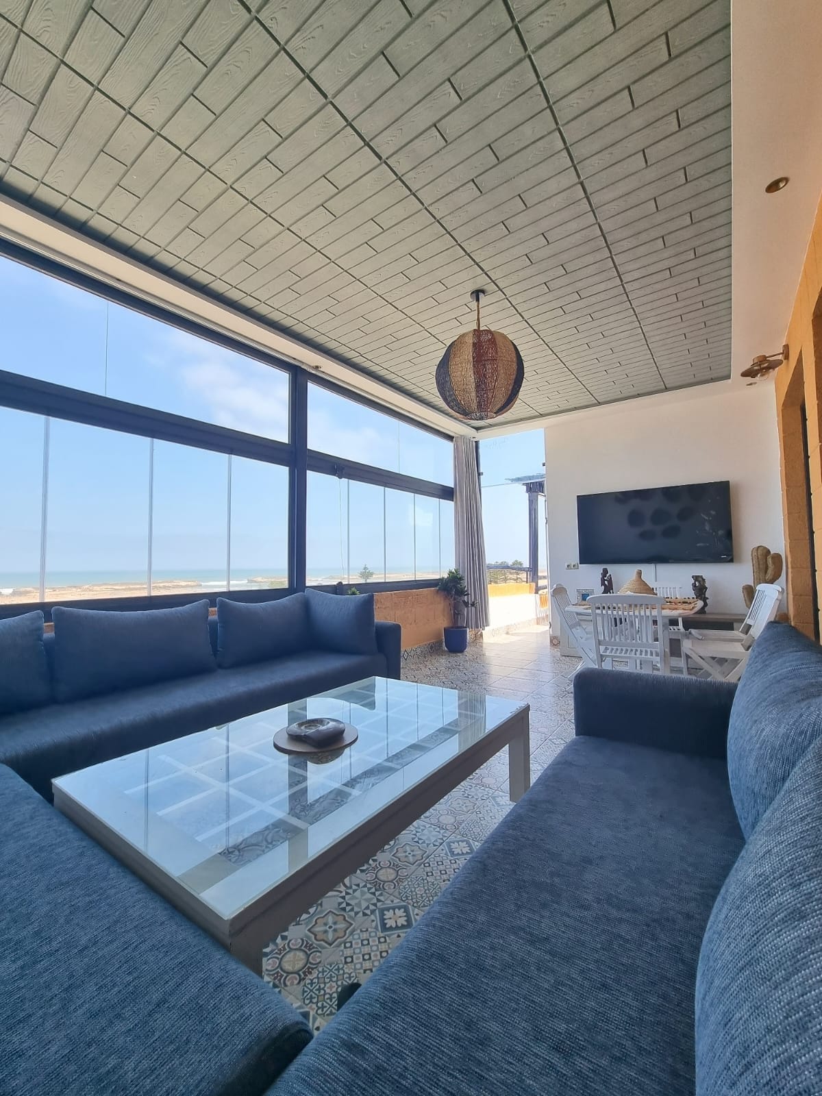 Duplex avec vue lagune & océan – Oualidia À moins de 10 min à pied de la plage, ce duplex lumineux offre une vue panoramique sur la mer et la lagune. Il comprend 3 chambres dont une suite parentale, un grand salon convivial et une terrasse idéale pour admirer le coucher du soleil. Alliant confort moderne, décoration soignée et emplacement privilégié, il promet un séjour inoubliable à Oualidia.