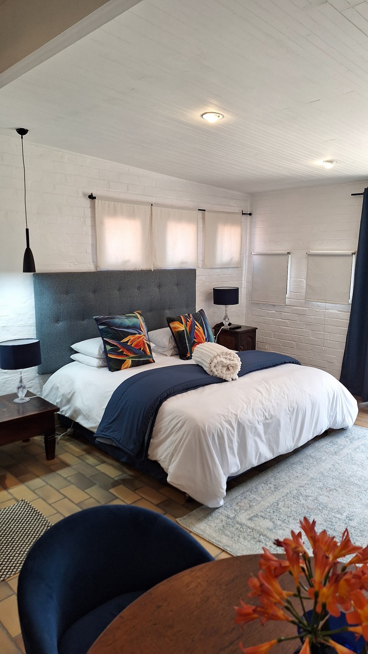 This private open-plan self catering farm cottage offers old-world charm with a stylish, minimalist touch. Designed for eco-conscious living, it runs on minimal electricity and features a fridge-freezer, water cooler, gas stove, and gas geyser. While there’s no TV, WiFi, or strong network coverage, it’s the perfect place to unwind and disconnect. With luxury linen and cozy details throughout, the cottage offers a peaceful, comfortable escape—your ideal home away from home on the farm.