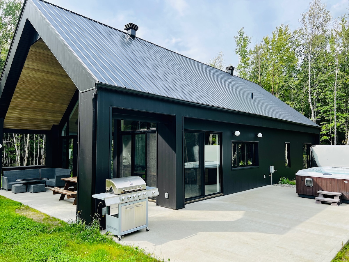 Le parfait équilibre entre nature, détente et activités! Chalet tout équipé avec spa privé, situé dans un domaine boisé au design unique. Idéal pour relaxer en famille ou entre amis. À moins de 10 minutes profitez du ski, de la SEPAQ, sentiers, golf, plages, pistes cyclables, et attraits de Magog. Foyer intérieur, cuisine complète, confort, borne pour voiture électrique et ambiance chaleureuse. Pensé pour créer de beaux souvenirs, été comme hiver! Il ne reste qu’à faire vos valises!