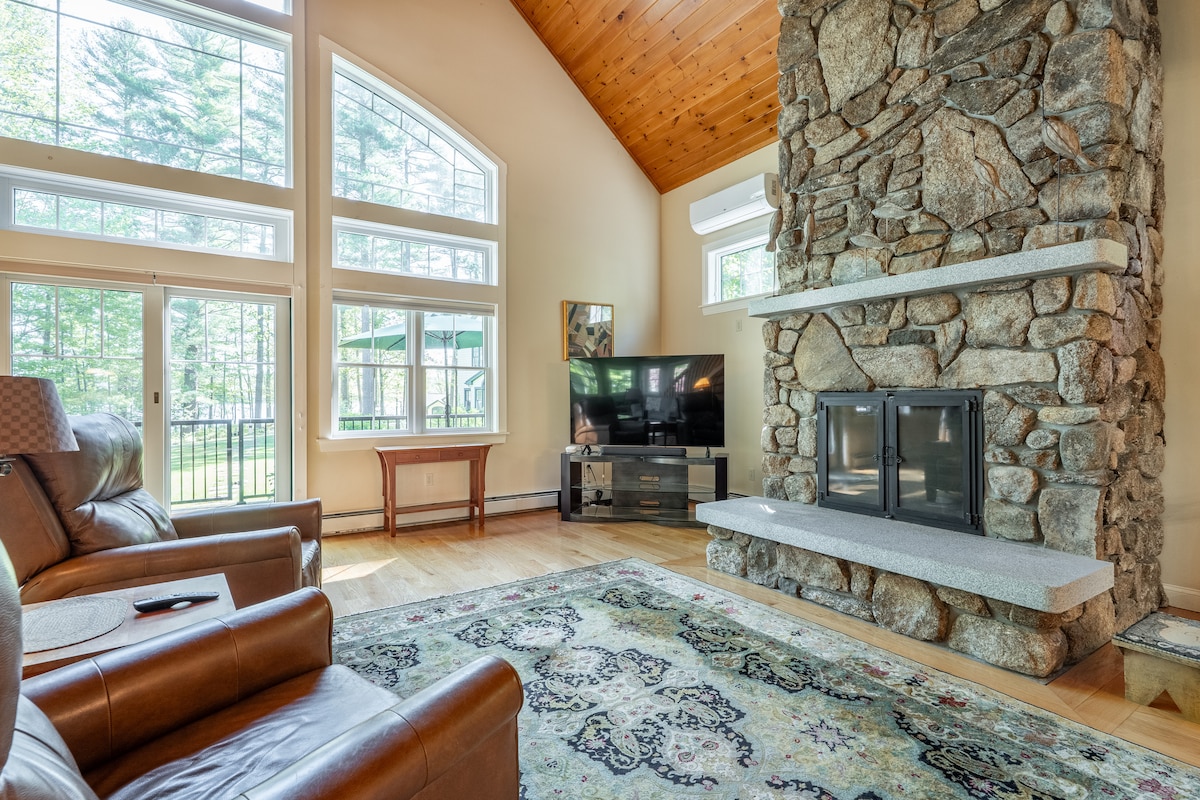 Welcome to the Mad Moose Lodge! Year-round adventures begin at this 2-bed, 2.5-bath Stoneham chalet. This vacation rental provides incredible fall foliage views and easy access to mountains and lakes! Close by to cross-country skiing and snowshoeing in the winter and hiking, mountain biking, boating and swimming in the summer there are endless options of outdoor enjoyment. Enjoy stunning sunsets over the mountains from the comfort of the couch, or while enjoying a game of pool in the game room!