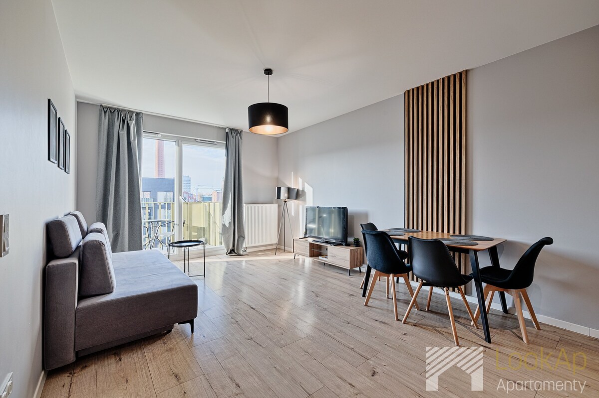 Geräumige, moderne Wohnung mit einem riesigen Wohnzimmer, einem großen Balkon und einem Blick über die Stadt, im Herzen von Lodz, aber in einer ruhigen und friedlichen Gegend, in luxuriösem Anwesen. In der Nähe der pulsierenden Hauptstraße der Stadt – Piotrkowska mit vielen Restaurants und Clubs. Schöner Park, Tennisplätze, Konzert- und Veranstaltungshallen, Expo Lodz, ein Kino und ein Einkaufszentrum in der Nachbarschaft, nur wenige Gehminuten von der Wohnung entfernt. Verbringe eine tolle Zeit in Lodz!