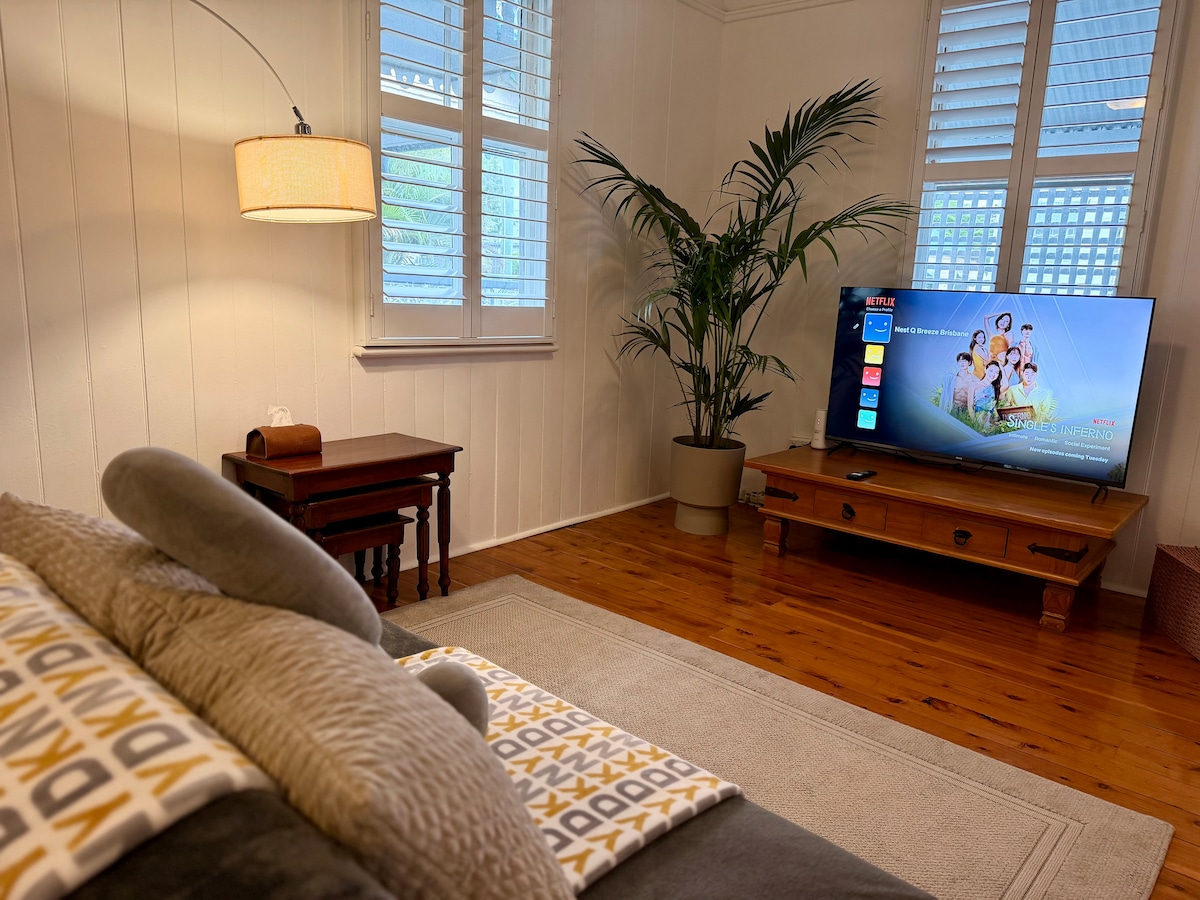 Step into this Breezy Queensland worker’s cottage, an adults-only retreat 2 mins from West End's Cafes. Unwind in two tranquil Queen bedrooms designed for restful nights. Brew morning coffee via Espresso Machine in the gourmet kitchen, a BBQ on the back deck or a drink by the fire pit in the backyard. Includes a 58” HDTV, WFH desk, fast WiFi and keypad entry. Note: Unit below; strictly no children. Perfectly placed for Brisbane’s finest dining, this is your stylish urban sanctuary.