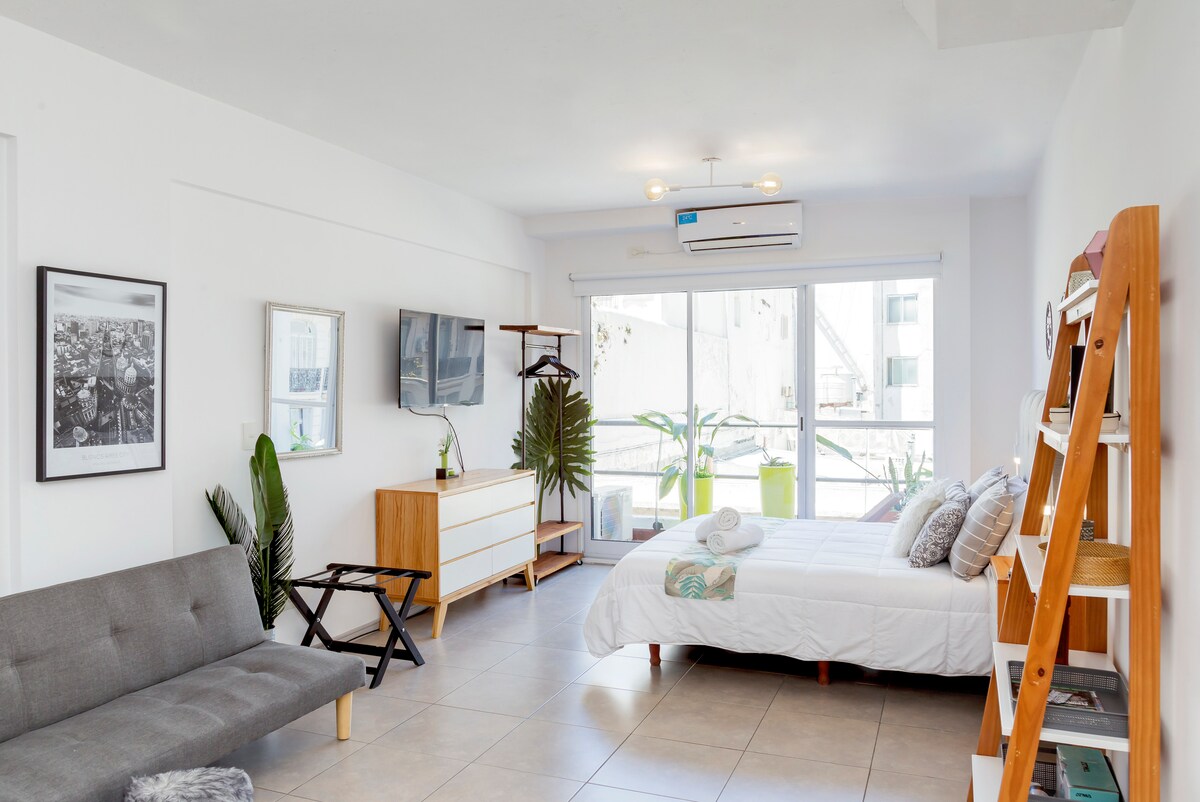 Enjoy Buenos Aires from a modern 14th-floor corner studio! This urban retreat is perfect for travelers looking to explore everything that Buenos Aires has to offer. The building features a rooftop pool on the 19th floor, ideal for relaxing while admiring panoramic views of the city skyline (open from October 1 to March 21). Guests have the option to park their vehicles in private parking lots conveniently located right across the street and at the corner of the block (extra cost applies).