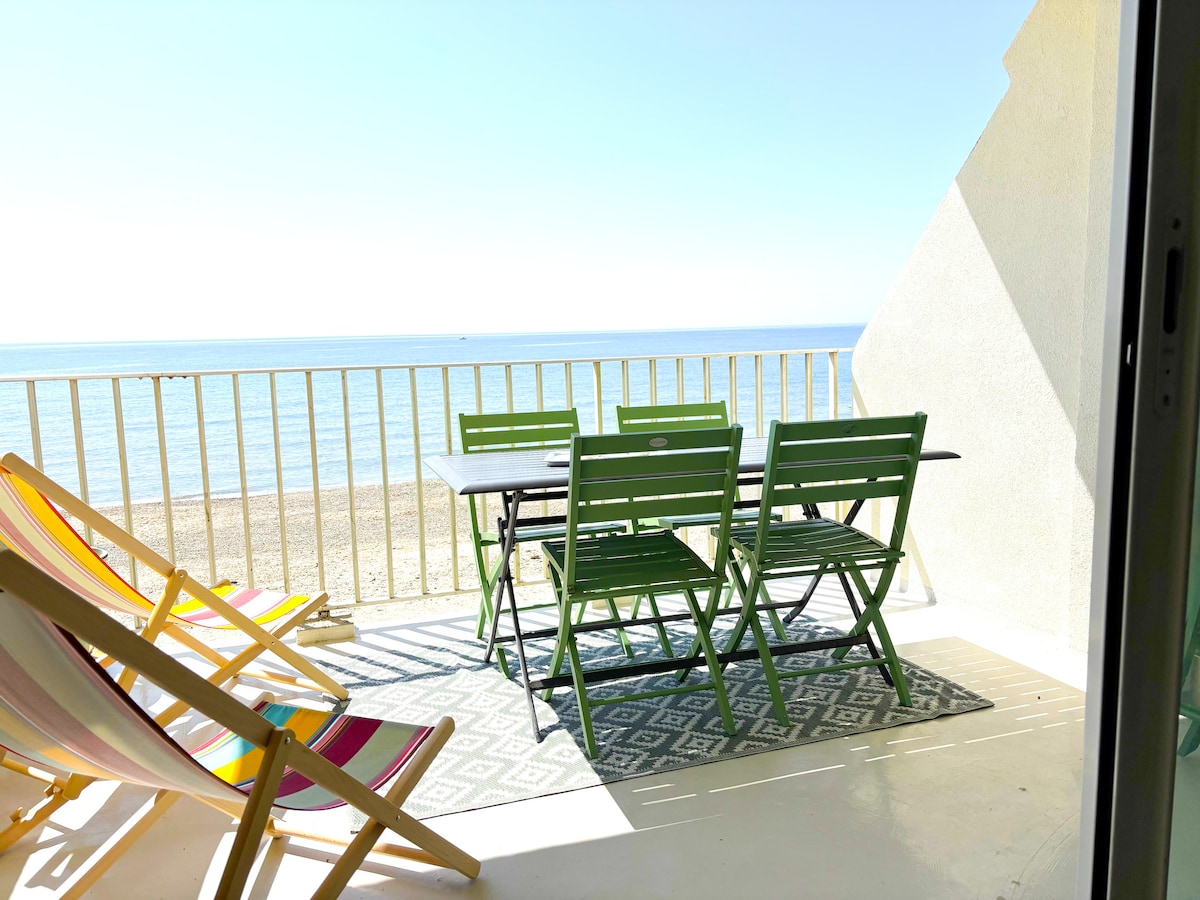 Selten auf Airbnb! Hübsches kleines T2 "Füße im Sand", 180-Grad-Blick auf die "Große blaue", 100% direkter Zugang zum Strand in 15 Sekunden und null Autos! Ideal gelegen im Erdgeschoss mit eigener Terrasse von mehr als 25m2: Teakholz-Wohnzimmer, Plantagen, elektrische Markise für Ihre Lesungen/Aperitifs, die Sie mit Blick auf das Meer bei 180° lecken! Privater Parkplatz nummeriert, sicher. Wohnung mit einem kleinen Schlafzimmer geschlossen. Es ist sonnig, modern, gut ausgestattet, renoviert.