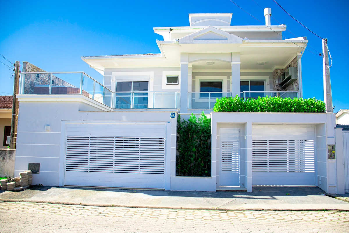 Das Beach House mit Pool liegt 600 Meter vom Strand Praia do Meio - Pinheira entfernt und ist bereit, Sie, Ihre Familie und Freunde zu empfangen. Hier finden Sie Ruhe, Gemütlichkeit, Spaß und viel Stil. Jede Ecke des Hauses wurde mit viel Sorgfalt und Liebe vorbereitet, um unsere Gäste besser zu empfangen und den Aufenthalt unvergesslich und besonders zu machen. Kommen Sie und genießen Sie den Pool (5 x 3 m), grillen Sie, ruhen Sie sich aus, schaukeln Sie in der Hängematte, genießen Sie die Aussicht, unterhalten Sie sich. Es gibt auch WLAN, Klimaanlage in den Zimmern...