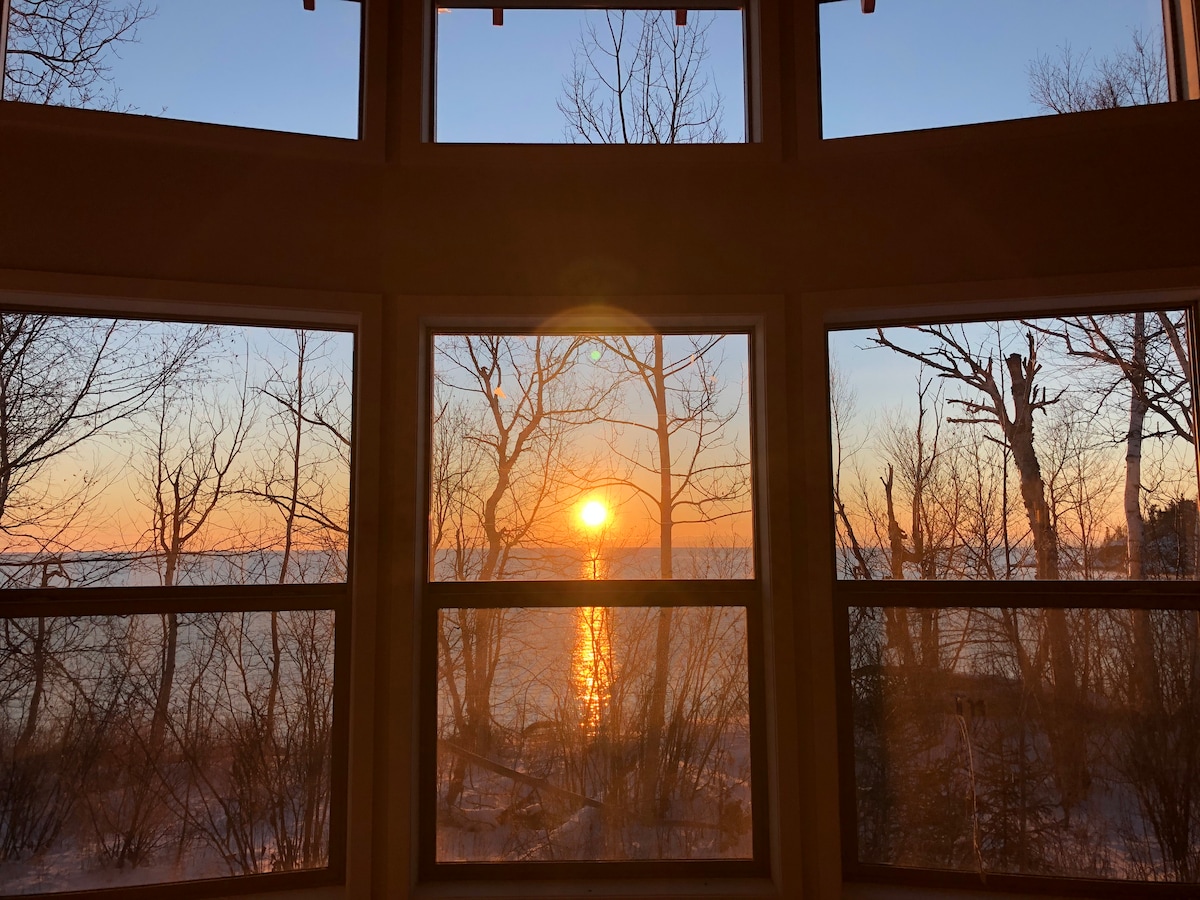 Unser Haus mit 3 Schlafzimmern und 2 Badezimmern befindet sich 1 Meile von Cornucopia und 20 Meilen von Bayfield entfernt. Eingebettet in einen üppigen Wald auf einer Sandsteinklippe mit Blick auf den Lake Superior, ist dieses Haus ein Neubau mit einer DAMPFDUSCHE , einer voll ausgestatteten Küche und einem gemütlichen Gaskamin . Terrasse mit Grill und atemberaubendem Blick auf den Sonnenuntergang. Großer Unterhaltungsraum mit 65-Zoll Smart-TV, BILLARDTISCH & DARTSCHEIBE. Feuerstelle im Freien und Picknicktisch. WIR ÜBEN BEI JEDEM WECHSEL VERBESSERTE DESINFEKTIONSMASSNAHMEN.