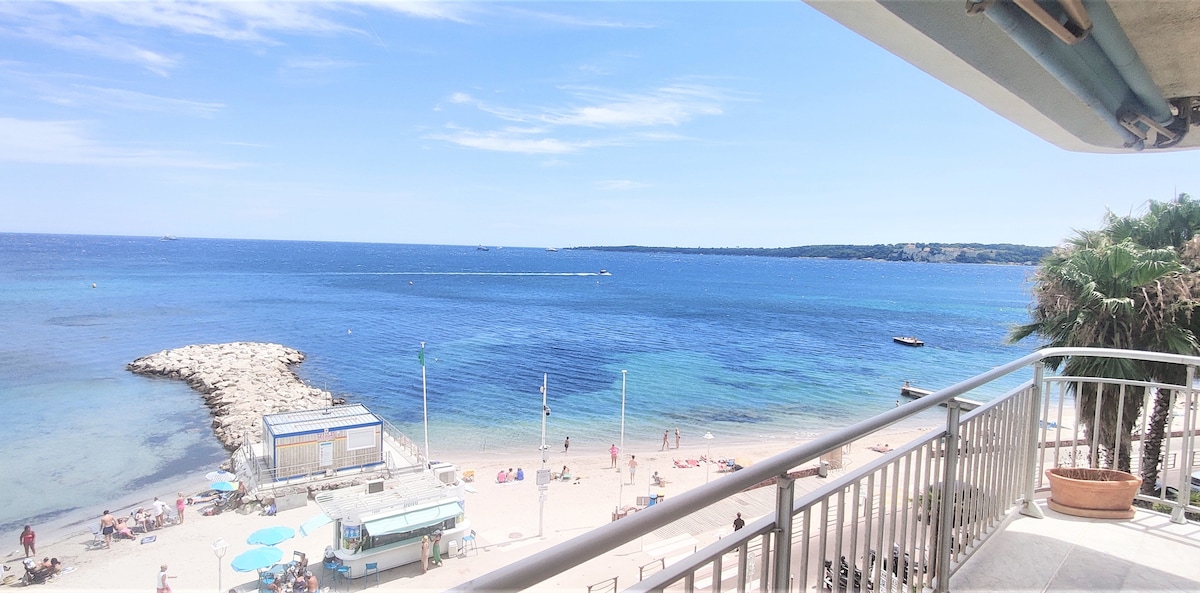 In Cannes, Palm Beach, auf der Pointe Croisette, schöne Wohnung in einer kleinen Residenz, ideal gelegen am Meer gegenüber dem feinen Sandstrand von "Gazagnaire". - Das Wohnzimmer und die Terrasse bieten einen herrlichen Panoramablick auf das Meer, vom Cap d'Antibes bis zu den Lérins-Inseln. - 2 Schlafzimmer - 2 Bäder: 1 Queen-Size-Bett von 2 m, 1 Doppelbett von 160 cm - Amerikanische Küche mit Blick auf das Wohnzimmer; - WLAN. - Ideal für Kongressteilnehmer oder Familien.