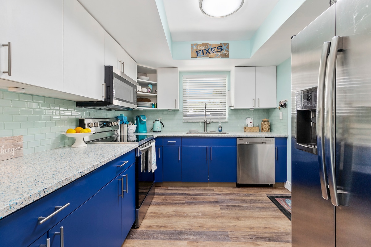 Unser Studio wurde kürzlich renoviert und alles ist neu! Es ist ein malerischer Raum mit tollem Dekor und einem riesigen, individuell gefliesten Badezimmer und einer Dusche. Das Kingsize-Bett ist super gemütlich und die Unterkunft ist mit allem ausgestattet, was du brauchst, einschließlich Highspeed-WLAN, Wandfernseher, Klimaanlage und einer voll ausgestatteten Küche. Wir sind nur wenige Geh-/Fahrradminuten vom Ufer und allem, was die Innenstadt von Stuart zu bieten hat, entfernt!