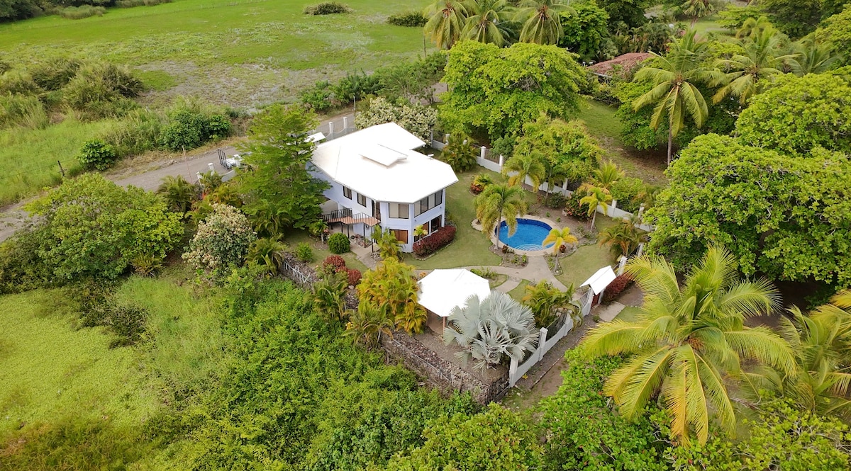 Erlebe dieses atemberaubende, moderne Haus auf 40 Hektar üppigem tropischem Wald mit einem kleinen See und einer Fülle von Wildtieren. Genieße exklusiven Zugang zu deinem privaten Pool und einer geräumigen überdachten Terrasse - ideal, um die lebendige Schönheit der unberührten Landschaft Costa Ricas zu beobachten. Nur ein paar Minuten zu einem der atemberaubendsten palmengesäumten Strände Costa Ricas! Unsere Unterkunft liegt günstig abseits der Costanera (siehe Anmerkungen) und ist eine malerische 2-stündige Fahrt vom internationalen Flughafen Juan Santa Maria (SJO) entfernt.