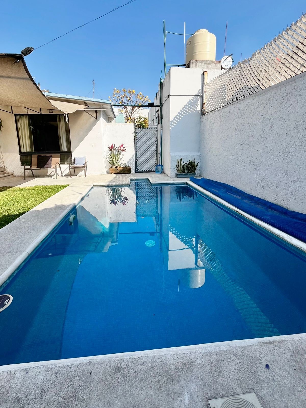 Estilo Cuernavaca, ubicada en colonia de prestigio a 15 minutos del zócalo, cerrada tranquila sin tráfico, muy cerca de la salida a la autopista para México. Alberca totalmente privada, Jacuzzi con espreas para masaje corporal, hamacas, camastros y baño en jardín y asador con carbón gratuito. Jardín amplísimo y privado con dos terrazas e iluminación nocturna en exclusividad. e aceptan niños y/o mascotas bien educadas. Mi esposo y yo vivimos en la casa mas no tendríamos que vernos.