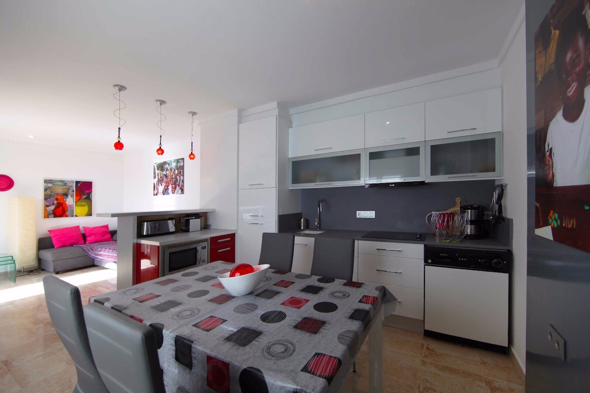 Schöne Wohnung aus dem Jahr 2024 mit einer sehr sorgfältigen Einrichtung, damit du einen komfortablen und ruhigen Aufenthalt genießen kannst. Beheizter Pool und Whirlpool im Winter, wo du auch an den kältesten Tagen baden und entspannen kannst, und ein Pool im Sommer unbedeckt. Terrasse mit atemberaubendem Blick auf das Meer und die Berge. Sichere Urbanisation in der Nähe von Golf und Schüssel, 800 Meter vom Strand entfernt. 2 Schlafzimmer, 1 Badezimmer und überdachter Parkplatz. Aufzug. WLAN. Internationales Fernsehen