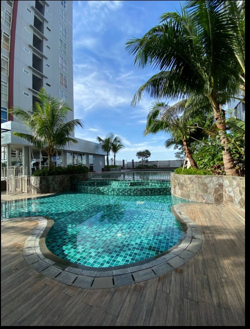 Tipe Suites 2 Bedroom Luas : 80 m² -Kulkas -mesin kopi -Dispenser -Mesin cuci -Peralatan dapur -Peralatan kebersihan -Wifi -Water heater -Balkon -TV -Setrika baju -Jemuran lipat -Sprei/bedcover -Listrik 3850 Watt Fasilitas 1. Kolam renang 2. Gym 3. Security 24Jam 4. Card access 5. Listrik & Air 7. Multi function room 8. Rooftop lantai 31 altitude *Tarif Promo September-oktober* Harian Rp1.5jt/malam Bulanan Rp25.jt/bulan 1 Tahun Rp200jt *Biaya maintenance ditanggung Pemilik Unit*