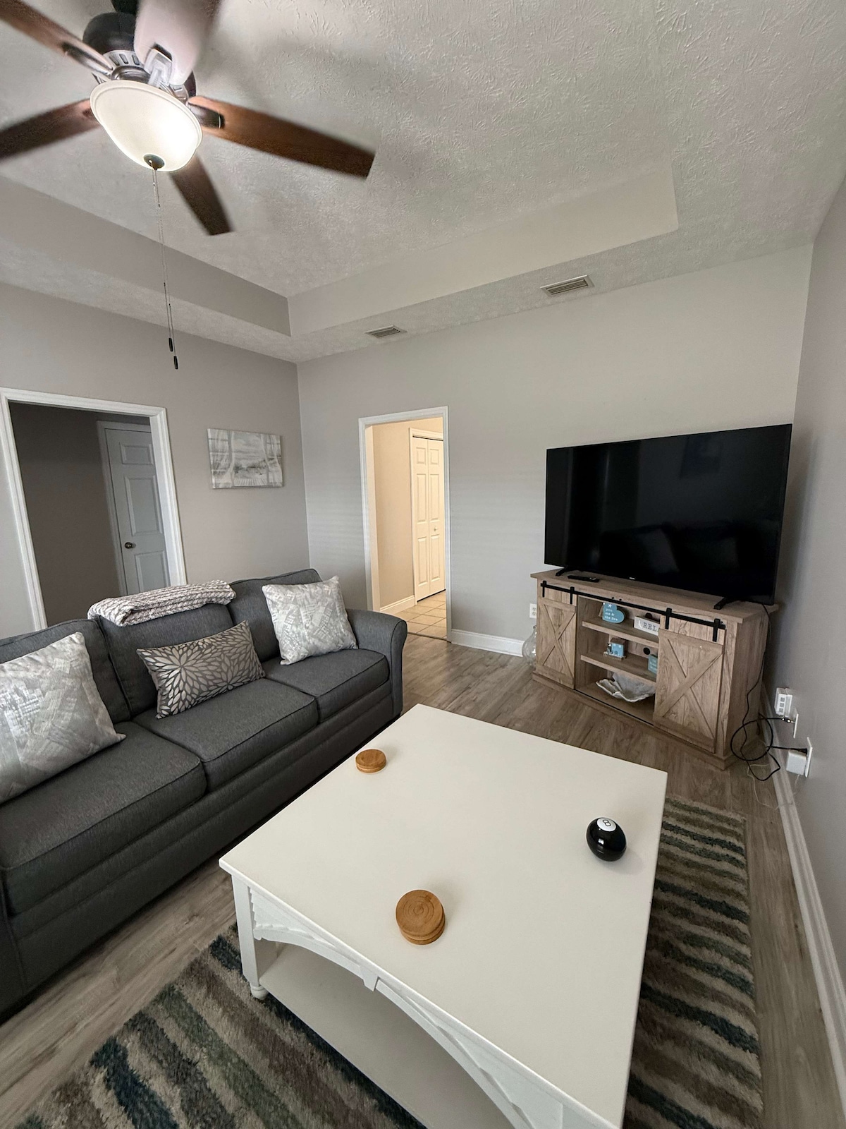 Dieses renovierte Stadthaus liegt nur 4 Gehminuten vom Strand entfernt und bietet Platz für sechs Erwachsene, ohne dass jemand im Wohnzimmer schlafen muss. Das Badezimmer bietet ein erstaunliches Duscherlebnis und du kannst den ganzen Sand und das Salzwasser leicht abwaschen, nachdem du den ganzen Tag am Strand verbracht hast. Dies ist im Herzen von PCB mit einem lokalen Lebensmittelgeschäft weniger als eine halbe Meile entfernt. Dieses Stadthaus hat alles, was du brauchst, um einen Tag am Strand zu genießen, einschließlich Kühler, 4 Liegestühle, 2 Sonnenschirme und Sandspielzeug.