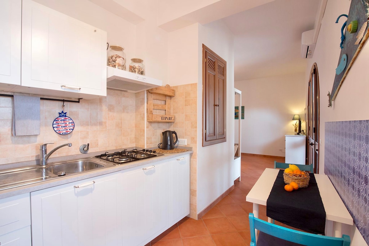 Le Formiche ist eines der 8 Apartments der Villa Paradiso und verfügt über zwei unabhängige Schlafzimmer, eine komfortable Küche, ein Badezimmer und eine Terrasse von etwa 100 m². Der Blick auf den Hafen von Lipari und das Meer ist atemberaubend und vermittelt fast das Gefühl, zu fliegen. Typisch für die Äolischen Inseln, führt er Sie zu allen Naturschönheiten, die Lipari zu bieten hat. Es befindet sich in Pianoconte, etwa 5 km vom Hafen entfernt, nur wenige Schritte von der Bushaltestelle und dem Supermarkt entfernt, wo Sie alle lokalen Produkte der Äolischen Inseln finden können!!! Hallo