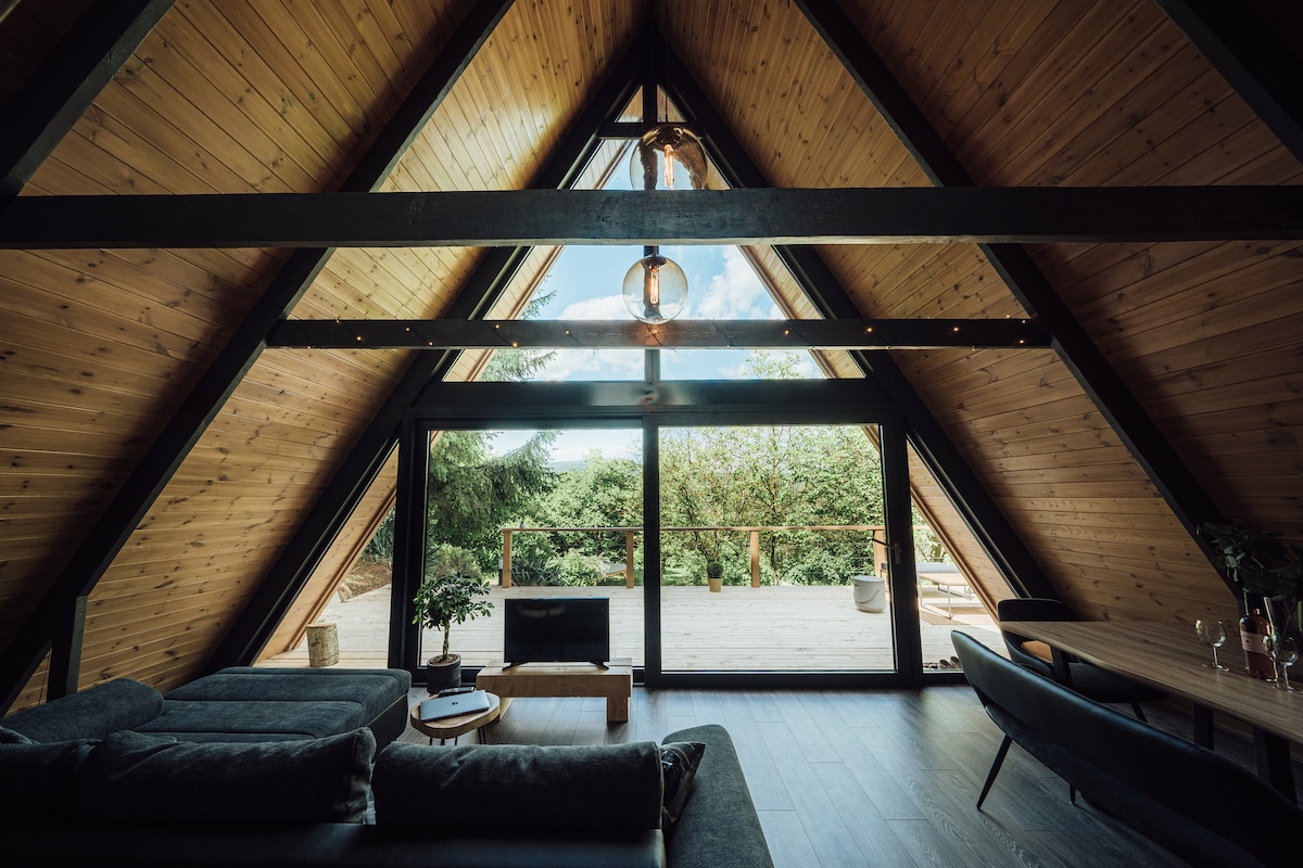Gemütliche Holzhütte mit Kamin und Blick auf die Donau