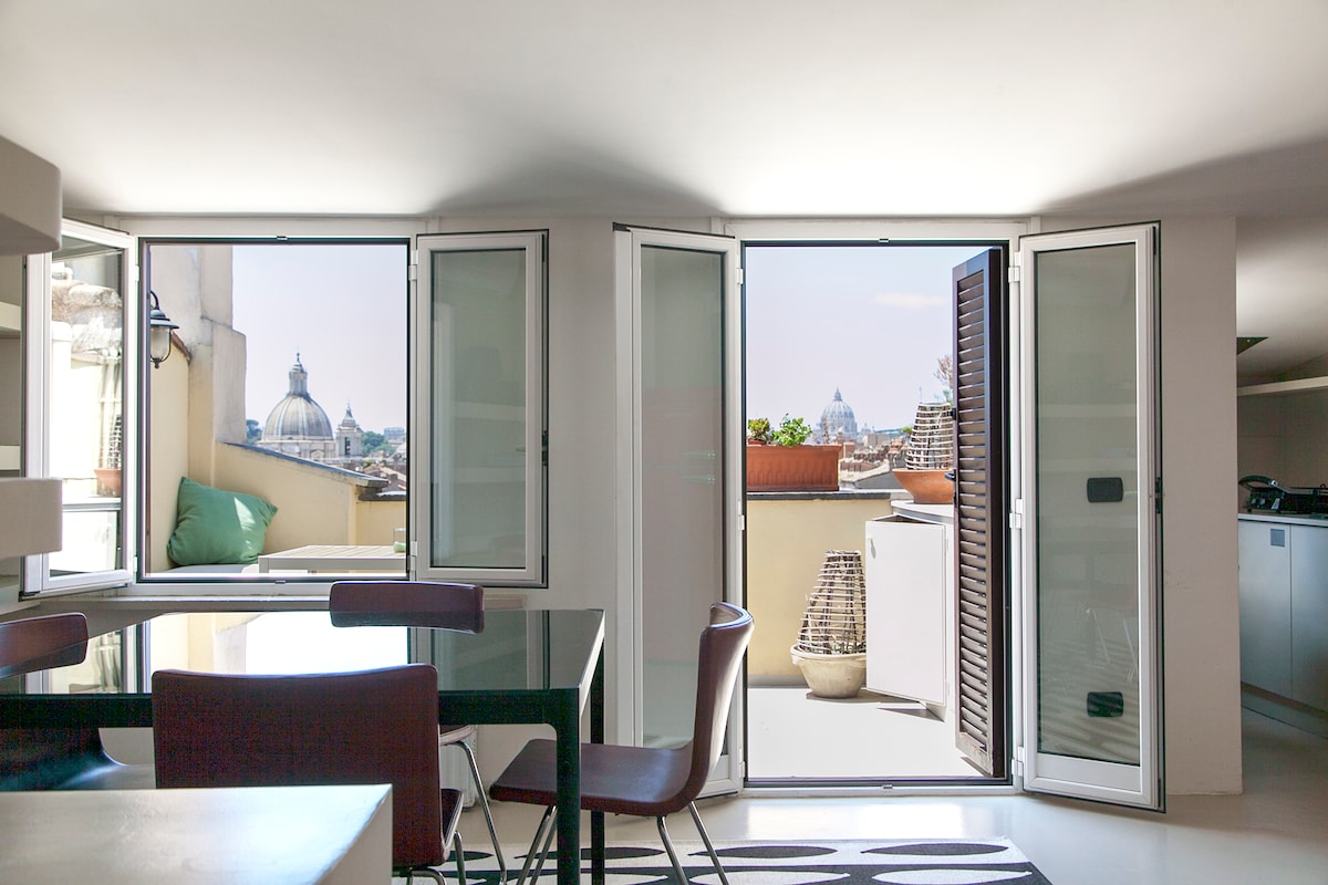 - Panorama-Loft in einer der besten Straßen Roms, nur wenige Schritte von der Piazza di Spagna entfernt. - Nur ein paar Schritte von den wichtigsten Sehenswürdigkeiten entfernt. - Extrem gut gelegen und mit allen wichtigen Verkehrssystemen verbunden. - Fitnessstudio nur wenige Schritte entfernt. - Elektrische Fensterjalousien. - Sehr ruhige Lage. - Designermöbel und -accessoires. - Sehr sicher. - Große Fenster. - Sonnige Terrasse mit großen Sofas und Esstisch. - Sessellift für Gepäck. - Möglichkeit, einen privaten Fahrer vom und zum Flughafen zu mieten.
