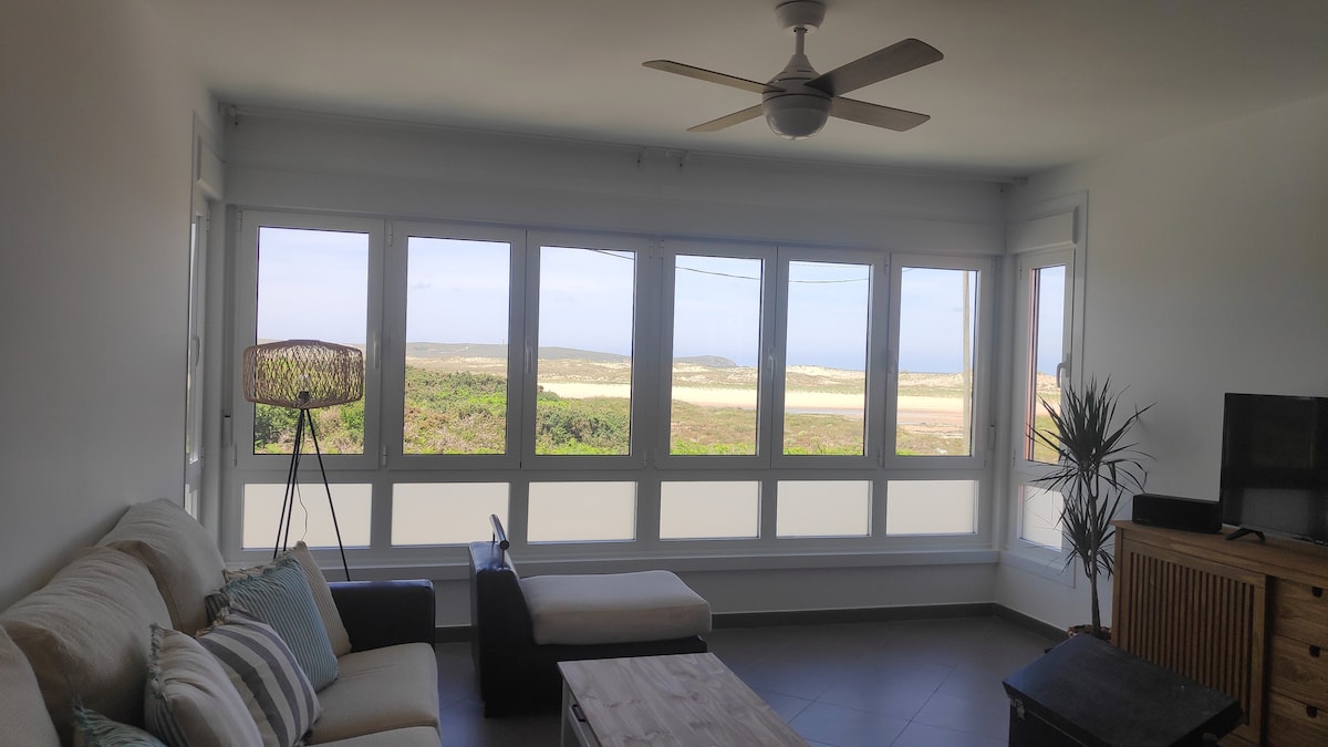 ¡Bienvenido a nuestra casa en la playa de Doniños! Construida con materiales naturales y modernos, ofrece 3 habitaciones, 2 baños y vistas impresionantes a la laguna y playa. Esta casa de máximo 8 huéspedes esta ubicada en una finca de más de 1700 metros cuadrados, rodeada de exuberante vegetación, donde reina una tranquilidad absoluta. Podrás disfrutar de un entorno idílico y un ambiente que invita a sentirse en paz, perfecto para familias que buscan escapar y conectar con la naturaleza.