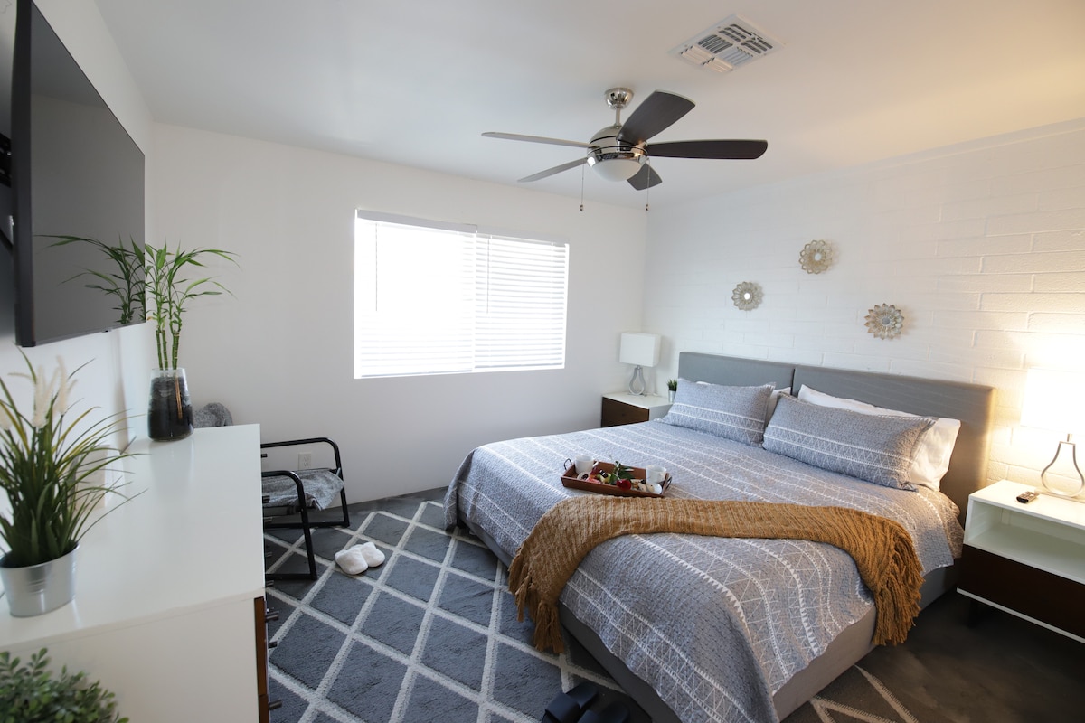 Nur einen kurzen Spaziergang vom Tempe Town Lake und der ASU und weniger als 10 Minuten vom Phoenix Sky Harbor Airport entfernt, ist dieser gemütliche und bequeme Ort perfekt für Reisende, die mitten im Geschehen sein möchten. Egal, ob Sie in der Stadt für Campus-Veranstaltungen, einen Wochenendausflug oder nur auf der Durchreise sind, Sie haben einfachen Zugang zu Cafés, lokalen Restaurants und vielem mehr! Der Raum ist mit einem komfortablen Wohnbereich, einer gut ausgestatteten Küche, schnellem WLAN und einem Smart-TV ausgestattet.