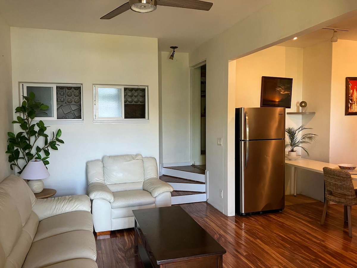 Wake up to some of the best ocean views in the area from this peaceful, modern studio. Guests often say that one night is just not enough to truly enjoy this special oasis. Ideal for those seeking serenity away from the crowds, the space offers a KING SIZE bed, AIR CONDITIONING, convertible sofa for extra guest & private washer/dryer. A well-equipped indoor/outdoor kitchenette. Enjoy a covered lanai, gas fire pit, gas grill, fast Wi-Fi, smart TV, beach gear, essentials for a relaxed stay.